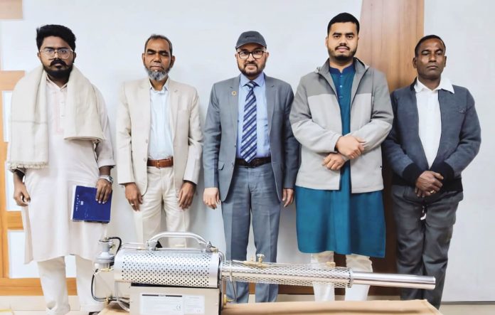 চট্টগ্রাম বিশ্ববিদ্যালয়ের আবাসিক হলসমূহে এবং বিভিন্ন দপ্তরে নিয়মিত মশা নিধন অভিযান পরিচালনার জন্য পরীক্ষামূলকভাবে কোরিয়ান ইঋ ১৫০ মডেলের একটি ফগিং মেশিন ক্রয় করেছে বিশ্ববিদ্যালয় কর্তৃপক্ষ। গতকাল সোমবার মেশিনটির মোড়ক উন্মোচন করা হয় এবং চবি কেন্দ্রীয় স্টোর শাখায় হস্তান্তর করা হয়।
