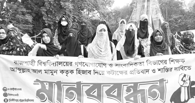 হিজাব নিয়ে রাবি শিক্ষকের কটাক্ষের প্রতিবাদ