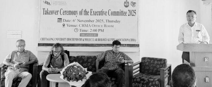 চট্টগ্রাম বিশ্ববিদ্যালয় বায়োকেমিস্ট্রি এন্ড মলিকুলার বায়োলজি এলামনাই অ্যাসোসিয়েশনের এক সভা গত বৃহস্পতিবার নিজ কার্যালয়ে অনুষ্ঠিত হয়েছে। সভায় ২০২৫–২০২৭ কার্যকালের জন্য নির্বাচিত ১১ সদস্যবিশিষ্ট নির্বাহী কমিটি দায়িত্ব গ্রহণ করেন। তারা হলেন নির্বাহী কমিটির সভাপতি প্রফেসর ড. কাঞ্চন চাকমা, সহ–সভাপতি প্রফেসর ড. মোহাম্মদ রেজওয়ানুল হক, সাধারণ সম্পাদক আবু ছৈয়দ মোহাম্মদ মুজিব, যুগ্ম সম্পাদক ড. আশেকুল ইসলাম, কোষাধ্যক্ষ প্রফেসর ড. মোহাম্মদ মোশারফ হোসেন, সাংগঠনিক সম্পাদক সানভি আহমেদ, বিজ্ঞান বিষয়ক সম্পাদক মো. খালিদ জুহানি রাফি, প্রচার ও তথ্য–প্রযুক্তি বিষয়ক সম্পাদক মো. ফজলে রাব্বী, নির্বাহী সদস্য মুনতাসির জাহান, আল মামুন ও ড. নাফসুন রহমান।