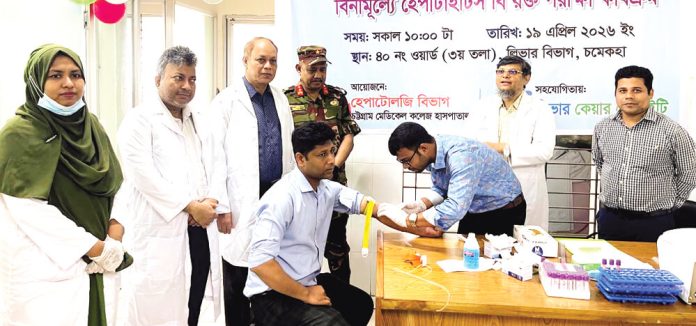 বিশ্ব লিভার দিবস উপলক্ষে চট্টগ্রাম মেডিকেল কলেজ হাসপাতালের হেপটোলজি বিভাগের উদ্যোগে এবং লিভার কেয়ার সোসাইটির সহযোগিতায় হেপাটোলজি বিভাগে বিনামূল্যে হেপাটাইটিস বি রক্ত পরীক্ষা কার্যক্রম অনুষ্ঠিত হয়েছে। অনুষ্ঠানটি উদ্বোধন করেন চট্টগ্রাম মেডিকেল কলেজ হাসপাতালের পরিচালক ব্রিগেডিয়ার জেনারেল মো. তসলিম উদ্দীন। তিনি বলেন, লিভারের অধিকাংশ রোগই জটিল, দীর্ঘমেয়াদি এবং চিকিৎসাও ব্যয়বহুল। তাই সচেতনতার মাধ্যমে লিভারের রোগ প্রতিরোধে কার্যকরী পদক্ষেপ নিতে হবে। তিনি জনসচেতনতা তৈরিতে লিভার কেয়ার সোসাইটির বিভিন্ন কার্যক্রমের ভুয়সী প্রশংসা করেন। কর্মসূচির আওতায় চট্টগ্রাম মেডিকেল কলেজ হাসপাতালের রোগী ও স্টাফদের মধ্যে বিনামূল্যে ‘হেপাটাইটিস বি’ রক্ত পরীক্ষা করা হয়।
