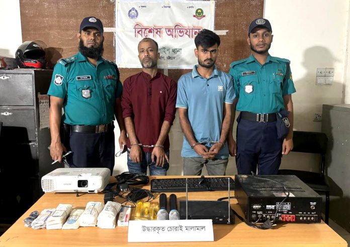 চট্টগ্রাম মেডিকেল কলেজ হাসপাতালের গাইনি বিভাগের ৩৩নং গাইনি ওয়ার্ডের ক্লাস রুম থেকে সরকারি মালামাল ও ওষুধ সামগ্রী চুরির ঘটনায় পাঁচালাইশ থানা পুলিশ দুইজনকে গ্রেফতার করেছে। এসময় তাদের কাছ থেকে উদ্ধার করা হয়েছে গাইনি ওয়ার্ডের ক্লাস রুমের চোরাইকৃত মালামাল ও ওষুধ সামগ্রী।