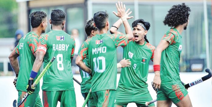 রোমাঞ্চকর জয়ে এশিয়ান গেমস হকির বাছাই শুরু করেছে বাংলাদেশ। শুরুতে পিছিয়ে পড়ার ধাক্কা দ্রুত সামলে নিল বাংলাদেশের ছেলেরা। এরপর ছড়ি ঘুরিয়ে ম্যাচের নিয়ন্ত্রণ নিয়ে নেন আশরাফুল–আমিরুলরা। সহজ জয়ের পথে ছোটা দলের পথটা শেষ দিকে কঠিন করে তোলে চাইনিজ তাইপে, কিন্তু আটকাতে পারেনি বাংলাদেশকে। ব্যাংককের রয়েল থাই এয়ারফোর্স হকি মাঠে গতকাল বৃহস্পতিবার পুল ‘বি’–র ম্যাচে চাইনিজ তাইপের বিপক্ষে ৪–৩ গোলে জিতেছে বাংলাদেশ। জোড়া গোল করেন আশরাফুল ইসলাম; একটি করে গোল দ্বীন ইসলাম ইমন ও আমিরুল ইসলামের। প্রথম কোয়ার্টারের চতুর্থ মিনিটে এগিয়ে যায় চাইনিজ তাইপে। এই কোয়ার্টারের শেষ দিকে পেনাল্টি কর্নার থেকে সমতা ফেরান আশরাফুল। দ্বিতীয় কোয়ার্টার বাংলাদেশ শেষ করে আশরাফুলের পেনাল্টি কর্নারের গোলে এগিয়ে থেকে। তৃতীয় কোয়ার্টারে পেনাল্টি কর্নার (পিসি) থেকে আমিরুল লক্ষ্যভেদ করলে ব্যবধান বাড়িয়ে নেয় বাংলাদেশ। ৫৯তম মিনিটে ইমন দলের চতুর্থ গোলটি করার পর মুহূর্তের মধ্যে দুই গোল হজম করে বসে দল। তবে শেষ পর্যন্ত ন্যুনতম ব্যবধান ধরে রেখেই জয় নিয়ে মাঠ ছাড়ে বাংলাদেশ। নিজেদের দ্বিতীয় ম্যাচে শুক্রবার বাংলাদেশ খেলবে শ্রীলঙ্কার বিপক্ষে। পুল ‘এ’ ও ‘বি’ মিলিয়ে বাছাইয়ে এবার অংশ নিচ্ছে নয় দল। এদের মধ্যে শীর্ষ ছয় দল পাবে আগামী সেপ্টেম্বরে জাপানে হতে যাওয়া এশিয়ান গেমসে খেলার সুযোগ পাবে। এশিয়ান গেমসের হকি ইভেন্টে বাংলাদেশ এ পর্যন্ত এশিয়ান গেমসে ১১ বার অংশ নিয়েছে। এর মধ্যে ১৯৭৮ ও ২০১৮ সালে ষষ্ঠ হওয়াই সর্বোচ্চ সাফল্য।