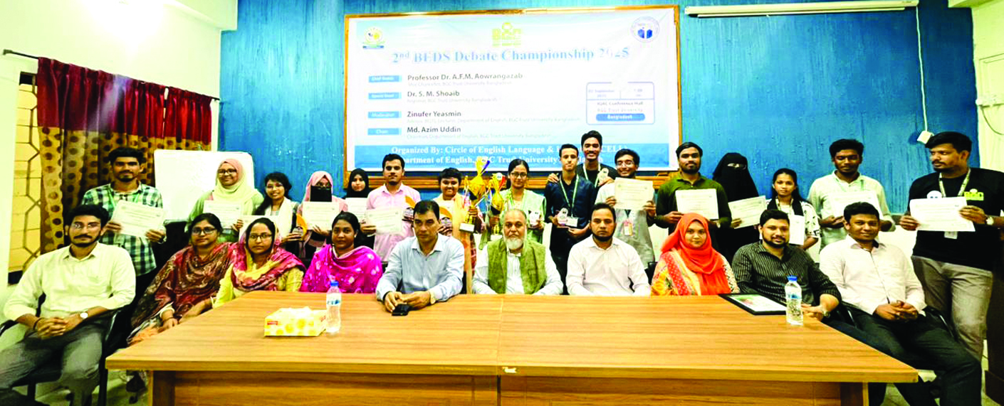 বিজিসি ট্রাস্ট ইউনিভার্সিটিতে দ্বিতীয় বেডস বিতর্ক প্রতিযোগিতা ডিবেটিং ক্লাবের সভাপতি মো. আনিসুর রহমানের সভাপতিত্বে গত ৩১ আগস্ট অনুষ্ঠিত হয়েছে। ‘Art of Debate শীর্ষক কর্মশালার মাধ্যমে প্রতিযোগিতার সূচনা হয়। মূল প্রতিযোগিতা চলে ১ ও ২ সেপ্টেম্বর। এতে অংশ নেয় চারটি হাউস। House of Area, House of Apollo, House Of Artemis এবং House of Athena। শেষে House of Area বিজয়ী হয় এবং House of Apollo রানারআপ হয়। সেরা বিতার্কিকের পুরস্কার পান House of Apollo-এর শিক্ষার্থী অনিশা শিকদার। গত ২ সেপ্টেম্বর ইংরেজি বিভাগের চেয়ারম্যান মো. আজিম উদ্দিনের সভাপতিত্বে ও সপ্তম সেমিস্টারের শিক্ষার্থী সাদিয়া ইসলামের সঞ্চালনায় অনুষ্ঠানে প্রধান অতিথি ছিলেন উপাচার্য প্রফেসর ড. . এফ. এম. আওরঙ্গজেব। তিনি বলেন, বিতর্ক কেবল একটি প্রতিযোগিতা নয়, এটি হলো চিন্তার বিকাশের অন্যতম শক্তিশালী মাধ্যম। আমাদের শিক্ষার্থীরা যখন মঞ্চে দাঁড়িয়ে যুক্তি উপস্থাপন করে, তখন তারা কেবল প্রতিপক্ষকে পরাজিত করার চেষ্টা করে না; বরং তারা নিজেদের চিন্তাশক্তি, গবেষণার মানসিকতা এবং প্রকাশভঙ্গিকে শাণিত করে। আজকের তরুণরা আগামী দিনের নেতৃত্ব গড়ে তুলবে। সেই নেতৃত্বের প্রথম শর্ত হলো যুক্তি দিয়ে কথা বলার সক্ষমতা এবং ভিন্নমতের প্রতি শ্রদ্ধাশীল থাকা। আমি আনন্দিত যে আমাদের ইংরেজি বিভাগ ও সার্কেল অব ইংলিশ ল্যাঙ্গুয়েজ অ্যান্ড লিটারেচার শিক্ষার্থীদের এমন একটি মঞ্চ তৈরি করে দিয়েছে যেখানে তারা নিজেদের দক্ষতা বিকাশের সুযোগ পাচ্ছে।বিশেষ অতিথির বক্তব্যে রেজিস্ট্রার ড. এস. এম. শোয়েভ বলেন,বিতর্ক একটি শক্তিশালী অনুশীলন, যা শিক্ষার্থীদের চিন্তাশক্তিকে প্রসারিত করে এবং তাদের জ্ঞানকে বাস্তব জীবনের সঙ্গে যুক্ত করে। ক্লাসরুমে আমরা তাত্ত্বিক শিক্ষা দেই, কিন্তু বিতর্কের মঞ্চ শিক্ষার্থীদের সেই শিক্ষাকে প্রয়োগ করার জায়গা দেয়। এখানে তারা সমালোচনামূলক দৃষ্টিভঙ্গি গড়ে তোলে, তথ্যউপাত্ত খুঁজে আনে এবং যুক্তি দিয়ে নিজেকে প্রকাশ করতে শেখে।