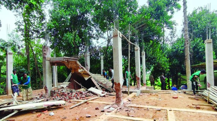 লোহাগাড়ায় বনের জায়গায় পাহাড় কেটে নির্মাণাধীন ভবন উচ্ছেদে অভিযান পরিচালনা করা হয়েছে। গতকাল রোববার সকালে উপজেলা প্রশাসন ও বনবিভাগের যৌথ উদ্যোগে উপজেলার চুনতি ইউনিয়নের ৫নং ওয়ার্ডের ইছহাক মিয়া সড়ক সংলগ্ন মেহেরুন্নেছা মাধ্যমিক বিদ্যালয়ের পাশে নির্মাণাধীন ভবনে এ অভিযান পরিচালনা করা হয়। অভিযানে নেতৃত্ব দেন উপজেলা সহকারী কমিশনার (ভূমি) ও নির্বাহী ম্যাজিস্ট্রেট মং এছেন। সাথে ছিলেন চুনতি রেঞ্জের রেঞ্জ কর্মকর্তা মো. আবীর হাসান, সাতগড় বনবিট কর্মকর্তা মো. মহসীন আলী ইমরানসহ বনবিভাগের স্টাফ ও চুনতি পুলিশ ফাঁড়ির সদস্যরা। নির্বাহী ম্যাজিস্ট্রেট মং এছেন জানান, বনের জায়গায় অবৈধভাবে স্থাপনা নির্মাণের খবরে উচ্ছেদ অভিযান পরিচালনা করা হয়েছে। সরকারি জায়গায় অবৈধভাবে বাড়ি নির্মাণকারীদের বিরুদ্ধে মামলা দায়ের জন্য বনবিভাগকে নির্দেশ দেওয়া হয়েছে। জনস্বার্থে এ ধরনের অভিযান অব্যাহত থাকবে।