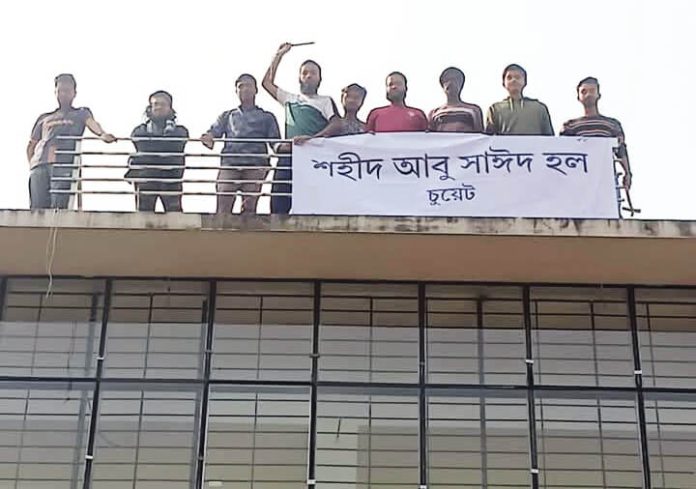 জানা যায়, শিক্ষার্থীরা ওই হলে একটি সাদা রঙের ব্যানার টাগিয়ে নামকরণ করেছে শহীদ আবু সাঈদ হল। এই ঘটনায় কিছু শিক্ষার্থীরা ফেসবুকে হলের নাম পরিবর্তন ও শেখ রাসেলে ম্যুরাল ভাংচুরের পোস্ট করে এটিকে সাধুবাদ জানিয়েছে। তারা ঘোষণা করেন, ক্যাম্পাসে ছাত্রলীগের সঙ্গে যারা জড়িত বা পদে ছিলেন সকলকে হল থেকে বিতাড়িত করা হবে।
