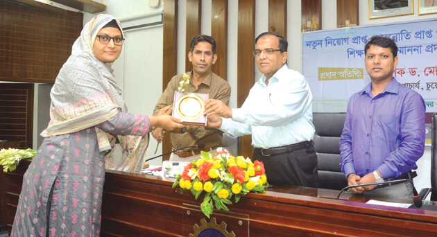 চট্টগ্রাম প্রকৌশল ও প্রযুক্তি বিশ্ববিদ্যালয়ের (চুয়েট) শিক্ষক সমিতির কার্যনির্বাহী পরিষদের ৩য় সাধারণ সভা এবং নতুন নিয়োগপ্রাপ্ত, পদোন্নতিপ্রাপ্ত ও উচ্চশিক্ষা সম্পন্নকারী শিক্ষকদের সম্মাননা প্রদান গতকাল রোববার অনুষ্ঠিত হয়। বিশ্ববিদ্যালয়ের একাডেমিক কাউন্সিল কক্ষে আয়োজিত অনুষ্ঠানে প্রধান অতিথি ছিলেন ভাইস চ্যান্সেলর অধ্যাপক ড. মোহাম্মদ রফিকুল আলম। সভাপতিত্ব করেন শিক্ষক সমিতির সভাপতি ড. আবু সাদাত মুহাম্মদ সায়েম। স্বাগত বক্তব্য রাখেন শিক্ষক সমিতির সাধারণ সম্পাদক ড. মো. বশির জিসান। অনুষ্ঠান সঞ্চালনা করেন ড. মেহেদী হাসান চৌধুরী। অনুষ্ঠানে ২০২২ সালে নতুন নিয়োগপ্রাপ্ত ৩৫ জন, পদোন্নতিপ্রাপ্ত ৩১ জন এবং উচ্চশিক্ষা সম্পন্নকারী ১৪ জন মোট ৮০ জন শিক্ষককে সম্মাননা প্রদান করা হয়। দুই পর্বে সাজানো এই অনুষ্ঠানের প্রথম পর্বে শিক্ষক সমিতির ৩য় সাধারণ সভা এবং দ্বিতীয় পর্বে সম্মাননা প্রদান করা হয়। প্রেস বিজ্ঞপ্তি।