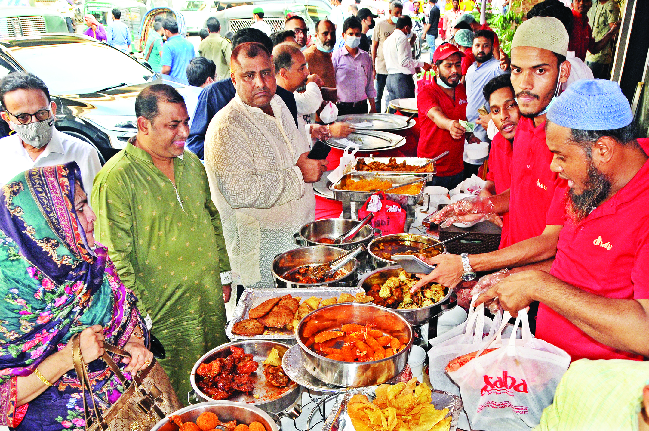 করোনার ধাক্কা কাটিয়ে প্রায় দুই বছর পর নগরীতে হোটেল রেস্টুরেন্টগুলোতে ইফতারি বিক্রির ধুম পড়েছে। এছাড়া অভিজাত হোটেল রেস্টুরেন্ট ছাড়া পাড়া মহল্লার গলিতে সামিয়ানা টাঙিয়েও অনেক বিক্রেতা রকমারি ইফতারির পসরা সাজিয়ে বসেছে। যার যার সাধ্যমতো ক্রেতারা সেইসব ইফতারি কিনে নিয়ে হাসিমুখে বাড়ির পথ ধরেছেন। সাধারণত প্রথম রমজানে অধিকাংশ মানুষ পরিবারের সঙ্গে ইফতার করতে স্বাচ্ছন্দ্যবোধ করেন। তাই প্রথমদিন ইফতারিতে বাড়তি মাত্রা যোগ করতে অনেক রোজাদার নগরীর প্রসিদ্ধ হোটেল রেস্টুরেন্টে পার্সেলের জন্য ছুটে যান।