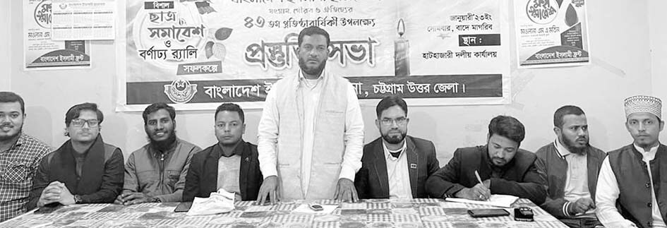 এতে বাংলাদেশ ইসলামী ছাত্রসেনা চট্টগ্রাম উত্তর জেলা সভাপতি মুহাম্মদ আলী আকবর সভাপতিত্ব করেন। মুহাম্মদ রবিউল হোসেন সুমন ও মুহাম্মদ আবদুল খালেকের সঞ্চালনায় অনুষ্ঠিত প্রস্তুতি সভায় প্রধান অতিথি ছিলেন বাংলাদেশ ইসলামী ফ্রন্টের কেন্দ্রীয় সাহিত্য ও সাংস্কৃতিক সচিব মুহাম্মদ এনামুল হক ছিদ্দিকী। বিশেষ অতিথি ছিলেন বাংলাদেশ ইসলামী যুবসেনা চট্টগ্রাম উত্তর জেলা সভাপতি আজিম উদ্দিন আহমেদ, সহসভাপতি মুহাম্মদ আলমগীর হোসেন মামুন। বক্তারা বলেন, ছাত্র সমাজকে আদর্শিক ছাত্রবান্ধব জ্ঞানমুখী ছাত্র রাজনীতির পথে ফিরে আসতে হবে।