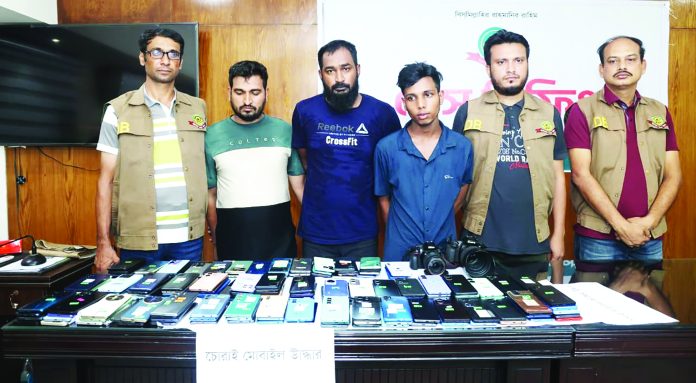 বড় ধরনের অভিযানে মোবাইল ফোন চোরচক্রের তিন সদস্যকে গ্রেপ্তার করেছে মহানগর গোয়েন্দা (ডিবি পশ্চিম) পুলিশ। এ সময় তাদের কাছ থেকে ১৪৮টি চোরাই মোবাইল ফোন, উন্নত প্রযুক্তি ব্যবহার করে আইএমইআই পরিবর্তনের সরঞ্জাম এবং দুটি ডিএসএলআর ক্যামেরা উদ্ধার করা হয়।