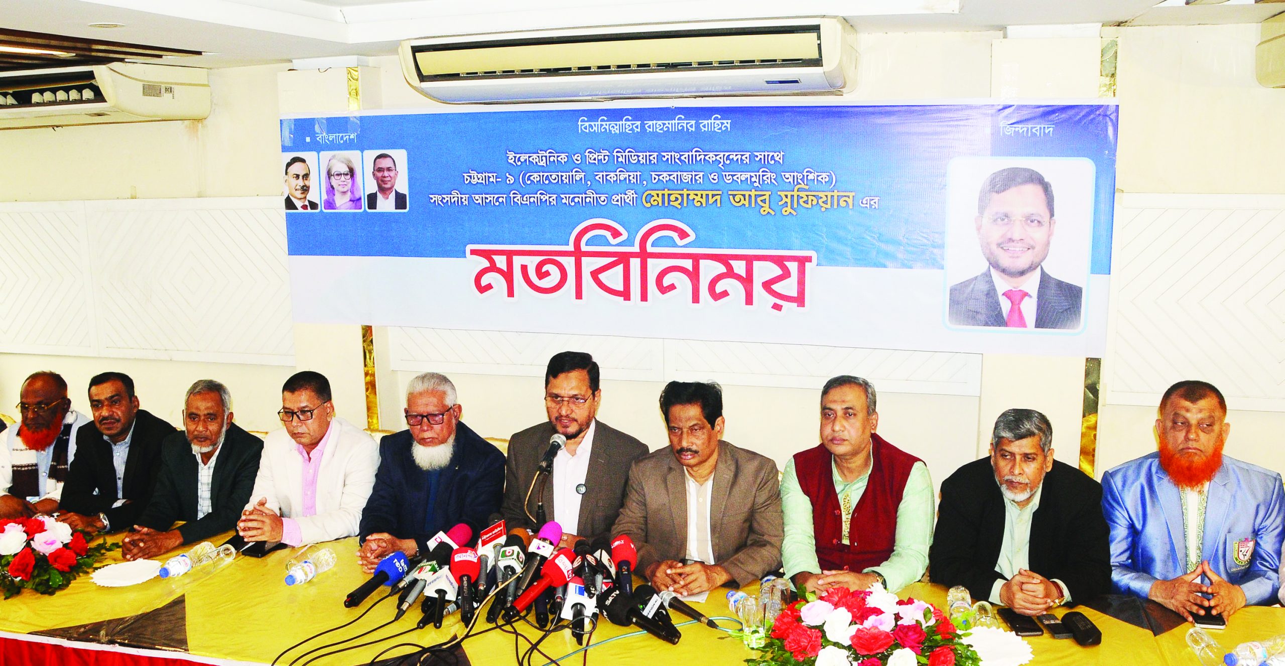 নির্বাচনের সুষ্ঠু পরিবেশ বজায় রাখার জন্য যারা অস্ত্রধারী সন্ত্রাসী, বেআইনি কর্মকাণ্ড করে তাদেরকে কঠোরভাবে আইনের আওতায় আনার জন্য প্রশাসনের প্রতি আহ্বান জানিয়েছেন ত্রয়োদশ সংসদ নির্বাচনে চট্টগ্রাম–৯ আসনে বিএনপির প্রার্থী আবু সুফিয়ান। অস্ত্রধারী সন্ত্রাসীদের আইনের আওতায় আনা প্রশাসনের দায়িত্ব মন্তব্য করে তিনি বলেন, প্রার্থী হিসেবে প্রশাসনকে যেটুকু সহযোগিতা করার সেটুকু আমরা করতে চাই। তিনি দাবি করেন, যারা নির্বাচন বন্ধ করতে চায় তারা ঢাকায় ওসমান শরীফ হাদি হত্যা এবং চট্টগ্রাম–৮ আসনের বিএনপির প্রার্থী এরশাদ উল্লাহর প্রচারণায় গুলিবর্ষণ করেছে। গতকাল রোববার দুপুরে নগরের জামালখানে একটি রেস্টুরেন্টে চট্টগ্রামে কর্মরত সাংবাদিকদের সাথে মতবিনিময়কালে তিনি এসব কথা বলেন। সভায় বক্তব্য রাখেন চট্টগ্রাম–৯ আসনে নির্বাচন পরিচালনা কমিটির চিফ কোঅর্ডিনেটর ও মহানগর বিএনপির সাবেক সাধারণ সম্পাদক আবুল হাশেম বক্কর ও বিএনপির কেন্দ্রীয় কমিটির সদস্য সামশুল আলম।