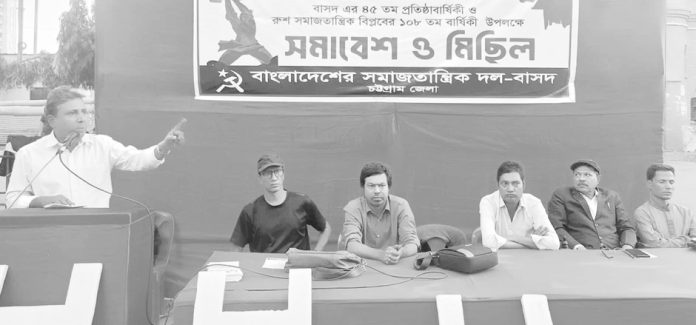 সরকার জনমত উপেক্ষা করে ও দেশের স্বার্থ বিসর্জন দিয়ে চট্টগ্রাম বন্দর বিদেশি কোম্পানির কাছে ইজারা দিচ্ছে। সাম্রাজ্যবাদী শক্তির কাছে নতজানু হয়ে দেশের নিরাপত্তা ও সার্বভৌমত্ব হুমকির মুখে ফেলছে।’ গতকাল শুক্রবার বিকালে নগরীর বটতলী রেলস্টেশন চত্বরে বাসদের ৪৫তম প্রতিষ্ঠাবার্ষিকী ও রুশ সমাজতান্ত্রিক বিপ্লবের ১০৮তম প্রতিষ্ঠাবার্ষিকী উপলক্ষে আয়োজিত সমাবেশে বাসদ নেতৃবৃন্দ এমন দাবি করেছেন। এতে সভাপতিত্ব করেন বাসদ চট্টগ্রাম জেলা শাখার ইনচার্জ আল কাদেরী জয়। প্রধান বক্তা ছিলেন বাসদ কেন্দ্রীয় বর্ধিত ফোরামের সদস্য ও ইজিবাইক সংগ্রাম পরিষদের কেন্দ্রীয় আহ্বায়ক খালেকুজ্জামান লিপন।
