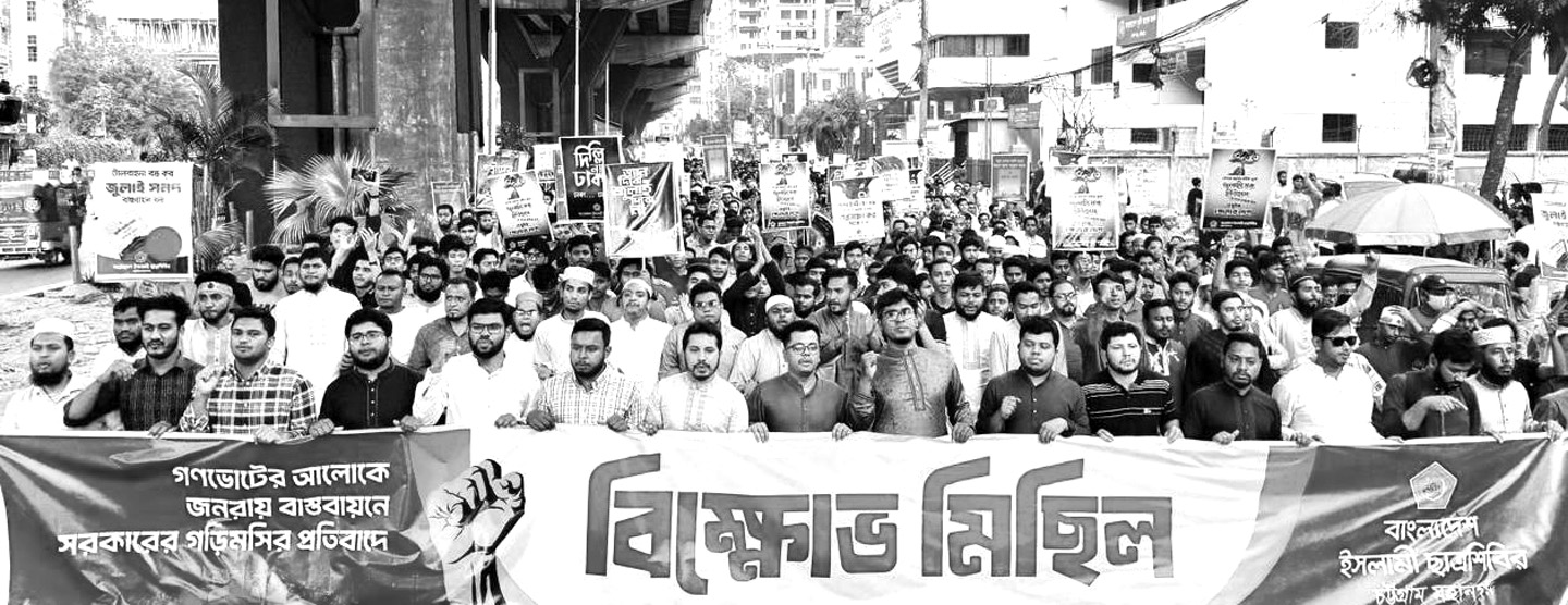 জনরায় বাস্তবায়নে গড়িমসির প্রতিবাদ ছাত্রশিবিরের বিক্ষোভ মিছিল