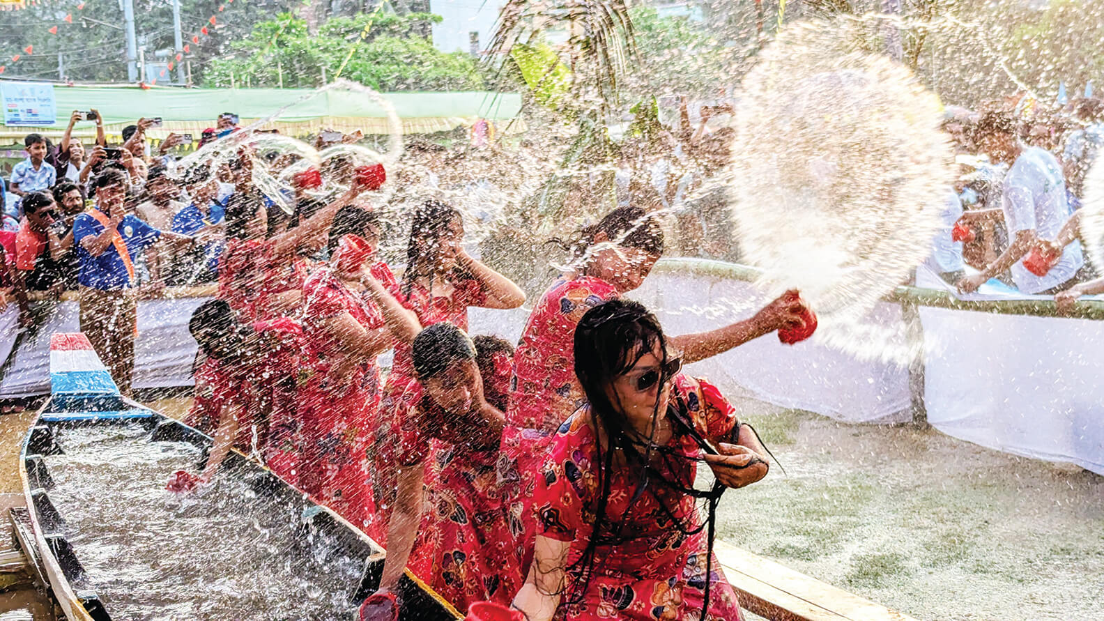 সকালে খাগড়াছড়ি সেনাবাহিনীর রিজিয়ন কমান্ডার এ কে এম ওবায়দুল হক মৈত্রী পানিবর্ষণ উৎসবের উদ্বোধন করেন। একই স্থানে মারমা শিল্পীরা সংগীত ও নৃত্য পরিবেশন করেন। এর আগে মঙ্গল প্রদীপ প্রজ্বলনের মাধ্যমে শোভাযাত্রার উদ্বোধন করেন জেলা পরিষদের চেয়ারম্যান শেফালিকা ত্রিপুরা। অনুষ্ঠানে সভাপতিত্ব করেন মারমা উন্নয়ন সংসদের সভাপতি মংপ্রু চৌধুরী।
