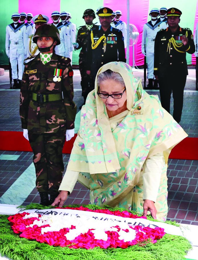 জাতির পিতা শেখ মুজিবুর রহমানের ১০৪তম জন্মবার্ষিকী ও জাতীয় শিশু দিবস উপলক্ষে গতকাল রোববার গোপালগঞ্জের টুঙ্গিপাড়ায় বঙ্গবন্ধুর সমাধিসৌধ প্রাঙ্গণে বক্তব্য রাখছিলেন তার কন্যা শেখ হাসিনা। খবর বিডিনিউজের।