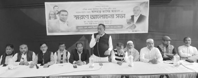 রাউজান উপজেলার পশ্চিম গুজরা ইউনিয়ন বিএনপির প্রবীণ বিএনপি নেতা আলহাজ্ব জাগের আহমদ মেম্বার স্মরণ সভায় প্রধান অতিথির বক্তব্য রাখেন রাউজান উপজেলা বিএনপির সাবেক যুগ্ম সাধারণ সম্পাদক মোহাম্মদ হারুন উর রশিদ। পশ্চিম গুজরা ইউনিয়ন বিএনপির সাবেক সাধারণ সম্পাদক ফরিদুল ইসলাম মাহমুদের সভাপতিত্বে বিশেষ অতিথি ছিলেন রাউজান উপজেলা বিএনপির সাবেক প্রচার সম্পাদক মোহাম্মদ এনাম উল্লাহ, চট্টগ্রাম উত্তর জেলা জাসাসের সাবেক দপ্তর সম্পাদক কাজী মোহাম্মদ সরোয়ার খান মনজু। বক্তারা বক্তব্য রাখতে গিয়ে বলেন আলহাজ্ব জাগের আহমদ মেম্বার পশ্চিম গুজরা ইউনিয়ন পরিষদের সফল মেম্বার ছিলেন। পশ্চিম গুজরার উনয়ন কর্মকান্ড তিনি স্মরণ হয়ে থাকবেন। বিএনপির একনিষ্ঠ জাতীয়তাবাদী শক্তির আপোষহীন সৈনিক হিসেবে কাজ করেছেন আজীবন। আরো বিশেষ অতিথি ছিলেন পশ্চিম মোহাম্মদ আমীর আলী, মোহাম্মদ আবদুল কাদের, সৈয়দ মোহাম্মদ শহীদুল ইসলাম, মোহাম্মদ দৌলতুর রহমান, আবদুল মালেক, সেলিম ছিদ্দিকী। যুবদল নেতা মোহাম্মদ নেছারুল হায়াত খানের সঞ্চলনায় স্মরণ সভায় বক্তব্য রাখেন বিএনপি নেতা মোহাম্মদ ইলিয়াস সওদাগর, আবদুর রশিদ ঘড়ি, আকতার হোসেন, মোহাম্মদ নুরুন্নবী, মোঃ ফরিদ আহাম্মদ, সালাউদ্দিন বাপ্পী, মোহাম্মদ আতিকুল্লাহ, মো: এনামুল হক, মাহবুব আলম, মোহাম্মদ ফারুক, জাহাঙ্গীর আলম, আমজাদ হোসেন, নেজাম উদ্দিন, মোহাম্মদ হারুন, ওসমান চৌধুরী, মোঃ রেজাউল করিম, মোহাম্মদ শহীদ, মাওলানা নেজাম, মোহাম্মদ সোহেল, মোঃ জসিম উদ্দিন, মোঃ জসিম, মোহাম্মদ সাইমন, মোহাম্মদ সাজ্জাদ, ইসমাইল, জুনায়েদ, আবির, বাবলু জলদাস, মিন্টু জলদাশ, হরিলাল জলদাশ, ভান্টু জলদাশ, সাধন জলদাশ, সিবু বড়ুয়া, সুভাস বড়ুয়া, সোনা বড়ুয়া, সাবুল বড়ুয়া প্রমুখ। প্রেস বিজ্ঞপ্তি।