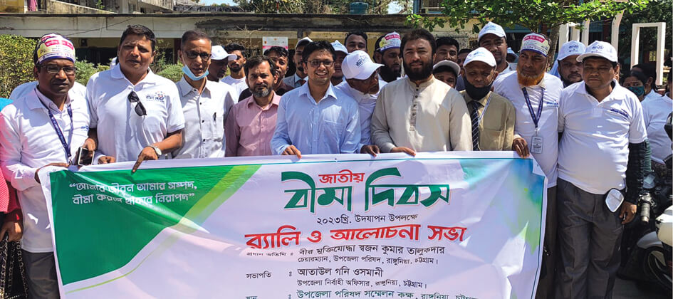 রাঙ্গুনিয়ায় জাতীয় বীমা দিবস পালিত হয়েছে। দিবসটি উপলক্ষে গতকাল উপজেলা প্রশাসনের আয়োজনে ও সরকারি এবং বেসরকারি বীমা কোম্পানির সহযোগিতায় র্যালি ও আলোচনা সভা অনুষ্ঠিত হয়। সভায় সভাপতিত্ব করেন উপজেলা নির্বাহী কর্মকর্তা (ইউএনও) আতাউল গনি ওসমানী। প্রধান অতিথি ছিলেন উপজেলা পরিষদের চেয়ারম্যান স্বজন কুমার তালুকদার।
