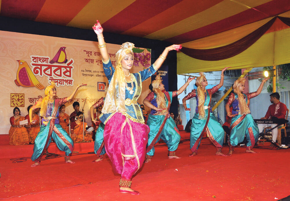 সকালে জাতীয় রবীন্দ্র সংগীত সম্মিলন পরিষদের শিল্পীরা তিন ঘণ্টা ব্যাপী গীতি আলেখ্য পরিবেশন করেন। পরিচালনায় ছিলেন, শ্রেয়সী রায়। এর আগে সকালে অপরাজিতা চৌধুরীর বেহেলার সুরে বর্ষ বরণের পর্দা ওঠে। তবলায় সঙ্গত করেন সানি দে। এরপর আবৃত্তিশিল্পী রাশেদ হাসান দরাজ কণ্ঠে রবীন্দ্রনাথের কবিতা আবৃত্তি করেন।