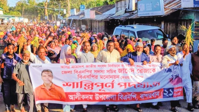 জাবেদকে মনোনয়ন দেওয়ার দাবিতে আলীকদমে বিএনপির পদযাত্রা কর্মসূচি