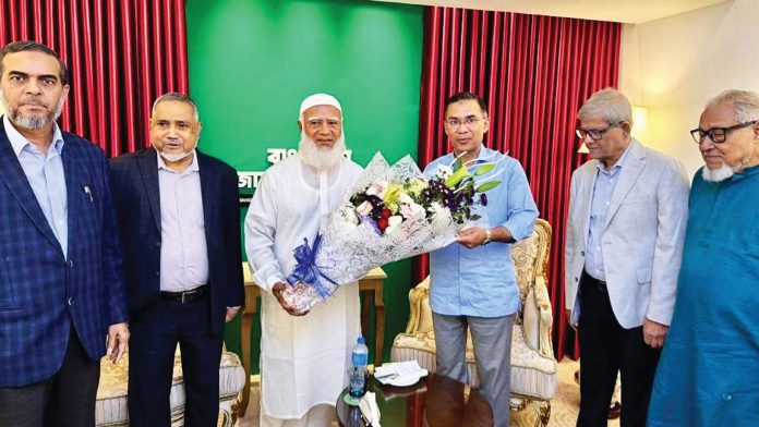 গতকাল রোববার সন্ধ্যা সাতটার কিছু পরে পরবর্তী সরকারপ্রধান হতে যাওয়া তারেক রহমান দলের নেতাদের নিয়ে রাজধানীর বসুন্ধরা আবাসিক এলাকায় বিরোধী দল হতে যাওয়া জামায়াত আমিরের বাসায় সৌজন্য সাক্ষাৎ করতে যান। দেশের বিবদমান রাজনৈতিক সংস্কৃতিতে জয়ের পর সরকার গঠন করতে যাওয়া দলের প্রধান নেতার প্রতিদ্বন্দ্বীর বাসায় যাওয়ার ঘটনা বিরল। আগের দিনই বিএনপির তরফে জানানো হয়েছিল দলের চেয়ারম্যান এবারের ভোটে প্রধান প্রতিদ্বন্দ্বী এক সময়ের জোটসঙ্গী জামায়াতের প্রধান শফিকুরের বাসায় যাবেন। এনসিপির আহ্বায়ক ও অভ্যুত্থানের সামনের সারিতে থাকা অন্যতম সমন্বয়ক নাহিদ ইসলামের বাসাতে যাবেন বলে শনিবার জানানো হয়েছিল। খবর বিডিনিউজের।