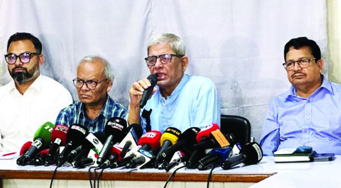 এক প্রশ্নের জবাবে মির্জা ফখরুল বলেন, আপনারা সবসময় লক্ষ্য করেছেন আমরা এর আগেও বলেছি যে বাংলাদেশের রাজনৈতিক স্থিতিশীলতাকে বিনষ্ট করবার জন্য একটি পক্ষ প্রথম থেকেই প্রচেষ্টা চালিয়ে যাচ্ছে–সে নির্বাচনের আগে থেকেই, তখনও আপনার অফুরন্ত মিথ্যাচার, ফেইক ইনফরমেশন, সোশাল মিডিয়াকে অন্যায়ভাবে ব্যবহার করে, অনৈতিকভাবে ব্যবহার করে বিএনপিকে জনগণের কাছ থেকে সরিয়ে দেওয়ার একটা প্রচেষ্টা চলেছে। কিন্তু সেটা সক্ষম হয়নি, সফল হয়নি। এখনো আবার দেখেন যে সমস্ত কার্টুনগুলো করে তারা দিচ্ছে এবং সেগুলোকে নিয়ে গিয়ে যে প্রচেষ্টা তৈরি করছে খুব স্পষ্টভাবে বোঝা যায় যে, ওই শক্তি যারা বাংলাদেশকে অস্থিতিশীল করতে চায়। একটা স্টেবল অবস্থায় নিয়ে যেতে চায় না, অনিশ্চিত অবস্থায় নিয়ে যেতে চায়–তারা এই কাজগুলো করছে। আমরা তীব্র নিন্দা জানিয়েছি, নিন্দা জানাচ্ছি এবং ছাত্র রাজনীতিতে এ ধরনের যে একটা অবস্থা তৈরি করার যে প্রচেষ্টা করা হচ্ছে আমরা তারও নিন্দা জানাচ্ছি। আমি আশা করব যে যে সমস্ত পক্ষগুলো এই ধরনের অপকর্মে লিপ্ত হচ্ছেন তার বিরুদ্ধে তারা থাকবেন কারণ বাংলাদেশের স্বাধীন সচেতন ছাত্র সমাজ বরাবরই অপরাজনীতিকে পরিহার করেছে এবং জনগণও অপরাজনীতি পরিহার করেছে এবং আমরা এবারও দেখব যে জনগণ এগুলোকে প্রতিরোধ করবে এবং তাদেরকে পরিহার করবে।