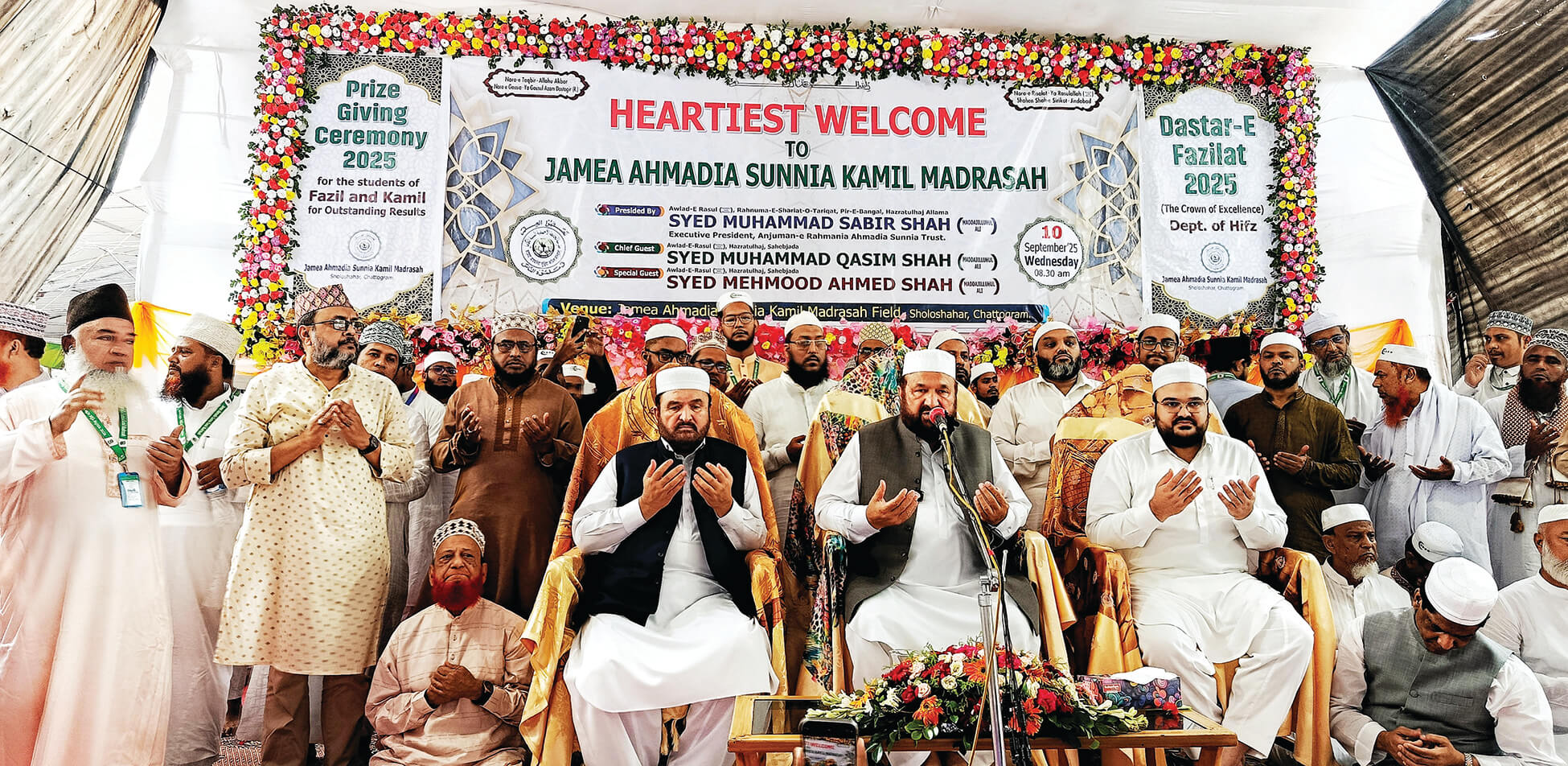 গাউসে জামান পীরে বাঙাল আল্লামা সৈয়্যদ মুহাম্মদ সাবির শাহ (মা.জি.আ) অ্যাসেম্বলী শেষে জামেয়া ফাযিল ও কামিল স্তরে জাতীয় পর্যায়ে প্রথম স্থান অর্জন করায় অভিনন্দন ও সংবর্ধনার সাথে হিফয বিভাগের ১২১ জন শিক্ষার্থীদের দস্তারে ফজিলত প্রদান করেন। তিনি বলেন, জামেয়া সমগ্র বিশ্বে সুন্নি মুসলিম উম্মাহর জন্য ঈমান, আক্বীদা, বিশ্বস্ত ও নির্ভরতার এক অনন্য কেন্দ্রস্থল। ভবিষ্যতে জামেয়ার এ সাফল্যের ধারা অব্যাহত রাখার জন্য শিক্ষার্থীদের নির্দেশ প্রদান পূর্বক গুরুত্বপূর্ণ দিকনির্দেশনামূলক নসিহত প্রদান করেন এবং জামেয়ার এ ধারাবাহিক সাফল্যে সন্তোষ প্রকাশ করেন। শেষে জামেয়া অধ্যক্ষ কার্যালয়ে শিক্ষকদের সাথে মতবিনিময় সভায় মিলিত হন। আল্লামা সৈয়দ সাবির শাহ বলেন, সভায় গভর্নিং বডি, শিক্ষকদের সারা দেশের প্রত্যন্ত অঞ্চল হতে আগত শিক্ষার্থীদের মানুষ গড়ার কারিগর হিসেবে গড়ে তোলার দায়িত্ব আপনাদের। মাশায়েখে হযরত কর্তৃক অর্পিত এ দায়িত্ব আমানতদারীর সাথে পালন করাসহ বিভিন্ন গুরুত্বপূর্ণ দিক নির্দেশনা প্রদান করেন তিনি। হুজুর কেবলা কুত্ববুল আউলিয়া আল্লামা সৈয়দ আহমদ শাহ্ সিরিকোটি (রা.) কর্তৃক প্রতিষ্ঠিত এশিয়াখ্যাত দ্বীনী শিক্ষা প্রতিষ্ঠানের উত্তরোত্তর উন্নতি ও সমৃদ্ধি কামনা করেন। শেষে দেশ ও জাতির সর্বাঙ্গীন মঙ্গল কামনায় দোয়া ও মোনাজাত পরিচালনা করেন রাহ্নুমায়ে শরীয়ত ও ত্বরীকত মুরশেদে বরহক, গাউসে জামান পীরে বাঙাল আল্লামা সৈয়্যদ মুহাম্মদ সাবির শাহ (মা.জি.আ)। প্রেস বিজ্ঞপ্তি।