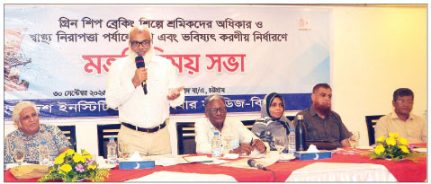শ্রম সংস্কার কমিশনের সদস্য তপন দত্ত সভায় বলেন, শ্রমিকরা অনেক সময় ন্যায্য অধিকার থেকে বঞ্চিত হয়। তাঁরা ন্যূনতম মজুরি পান না, ওভারটাইমের বেতনও ঠিকভাবে দেওয়া হয় না। ঝুঁকিপূর্ণ কাজে ভাতা ও চিকিৎসা সেবার নিশ্চয়তা নিশ্চিত করতে হবে। সভায় বক্তারা শিল্পের সার্বিক অগ্রগতির জন্য সরকার, মালিক ও শ্রমিক সংগঠনের সমন্বিত উদ্যোগের ওপর জোর দেন। শ্রম সংস্কার কমিশনের সদস্য তপন দত্তের সভাপতিত্বে এবং জাহাজভাঙা শ্রমিক ট্রেড ইউনিয়ন ফোরামের সদস্য সচিব ফজলুল কবির মিন্টুর সঞ্চালনায় সভায় বক্তব্য দেন ফোরামের আহ্বায়ক শেখ নুরুল্লাহ বাহার, অধ্যাপক কাজী নাজমুল হুদা, চট্টগ্রাম শ্রম দপ্তরের উপ–পরিচালক রুমানা আক্তার, সাংবাদিক ওমর ফারুক, জাহাজভাঙা শ্রমিক সেফটি কমিটির আহ্বায়ক অ্যাডভোকেট জহির উদ্দিন মাহমুদ, সদস্য সচিব মো. আলী, যুগ্ম সদস্য সচিব মো. ইদ্রিস ও কলকারখানা ও প্রতিষ্ঠান পরিদর্শন অধিদপ্তরের পরিদর্শক টিপ সুলতান প্রমুখ।