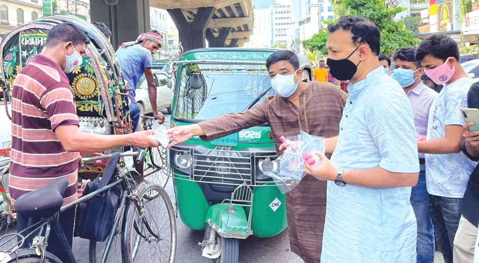 জিইসি মোড়ে মাস্ক ও স্যানিটাইজার বিতরণ