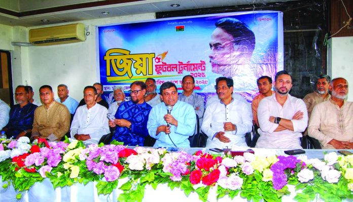 চট্টগ্রাম বিভাগীয় জিয়া ফুটবল টুর্নামেন্ট সফল করার লক্ষ্যে টুর্নামেন্ট আয়োজক কমিটির এক প্রস্তুতি সভা গতকাল শুক্রবার বিকালে চট্টগ্রাম জেলা স্টেডিয়াম মিলনায়তনে অনুষ্ঠিত হয়। বাংলাদেশ জেলা ও বিভাগীয় ক্রীড়া সংগঠক অ্যাসোসিয়েশনের উদ্যোগে এবং জাতীয়তাবাদী ক্রীড়া দলের সহযোগিতায় আগামী ২৪ অক্টোবর চট্টগ্রাম জেলা স্টেডিয়ামে এই টুর্নামেন্ট অনুষ্ঠিত হবে। সেখানে চারটি দল অংশগ্রহণ করবে। যেখানে জাতীয় ফুটবল দলের সাবেক তারকা খেলোয়াড়রা নেতৃত্ব দেবে। তৃণমূল পর্যায় থেকে ফুটবল খেলোয়াড় তুলতে এবং ফুটবলের জাগরণ করতে এই টুর্নামেন্টের আয়োজন করা হয়েছে। ধারাবাহিকভাবে সারাদেশে এই টুর্নামেন্ট অনুষ্ঠিত হবে। এতে প্রধান অতিথি থাকবেন বিএনপির স্থায়ী কমিটির সদস্য আমীর খসরু মাহমুদ চৌধুরী।