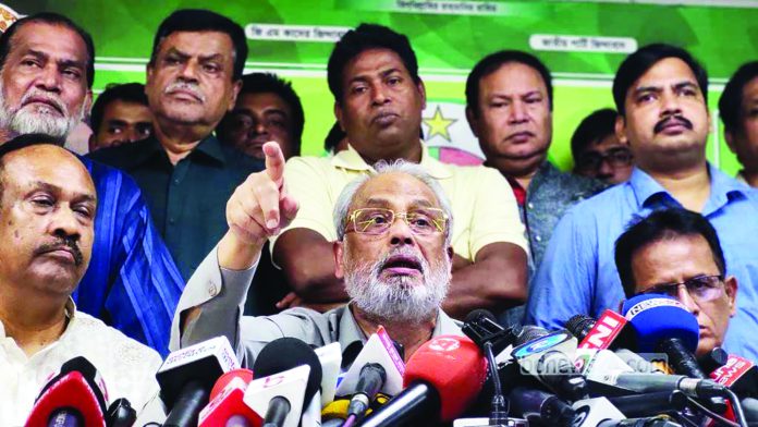 নোটিশে বলা হয়, জাতীয় পার্টির ওপর ভর করে শেখ হাসিনা জনগণের দিনের ভোট রাতে দিয়েছে এবং ভোটারবিহীন নির্বাচন করেছে। শুধুমাত্র তথাকথিত গৃহপালিত দল তথা বিরোধী দল থাকার জন্য স্বৈরাচারের সুরের সাথে সুর মিলিয়ে অবাধ লুটপাট করেছে। তাই সকল অপরাধের দায় তাদেরকেও নিতে হবে।