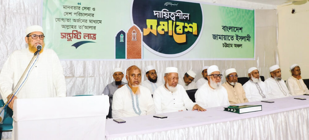 গতকাল শনিবার চট্টগ্রাম মহানগরী জামায়াতে ইসলামীর কার্যালয়ে অনুষ্ঠিত চট্টগ্রাম অঞ্চল জামায়াতের দায়িত্বশীল সমাবেশে সভাপতির বক্তব্যে তিনি এসব কথা বলেন। তিনি বলেন, দেশের চলমান রাজনৈতিক পরিস্থিতিতে জনগণের আশা–আকাঙ্ক্ষা পূরণে একটি দায়িত্বশীল রাজনৈতিক পরিবেশ নিশ্চিত করা জরুরি। জাতীয় স্বার্থকে সর্বাগ্রে রেখে সব রাজনৈতিক শক্তিকে দায়িত্বশীল ভূমিকা পালন করতে হবে। জনগণের অধিকার, আইনের শাসন এবং সুশাসন প্রতিষ্ঠা ছাড়া দেশের স্থিতিশীলতা ও উন্নয়ন সম্ভব নয়।