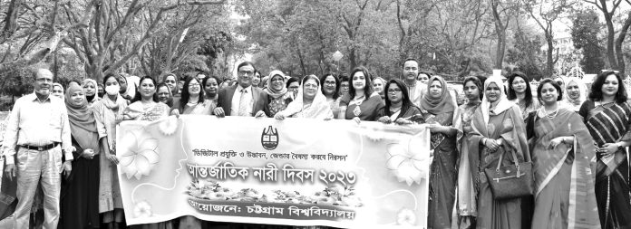 বিভিন্ন কর্মসূচির মধ্য দিয়ে চট্টগ্রাম বিশ্ববিদ্যালয়ের উদ্যোগে আন্তর্জাতিক নারী দিবস উদযাপিত হয়েছে। গতকাল বুধবার উপাচার্য প্রফেসর ড. শিরীণ আখতারের নেতৃত্বে শহীদ মিনার চত্বর থেকে এক র্যালি বঙ্গবন্ধু চত্বরে এসে শেষ হলে উপাচার্য ও উপ–উপাচার্য (একাডেমিক) বেলুন– ফেস্টুন ও শান্তির প্রতীক পায়রা উড়িয়ে কর্মসূচির উদ্বোধন করেন।