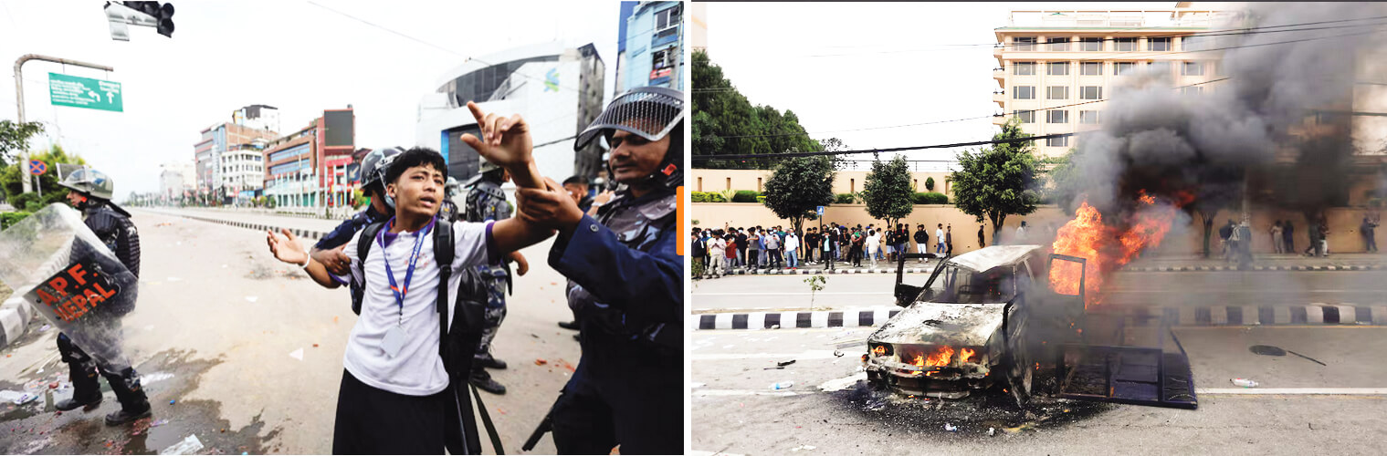 সোশ্যাল মিডিয়ার ওপর সরকারি নিষেধাজ্ঞার কারণে তরুণদের বিক্ষোভে উত্তাল হয়ে উঠেছে নেপাল। নিরাপত্তা বাহিনীর সঙ্গে সংঘর্ষে গতকাল অন্তত ১৯জন নিহত হয়েছে, যার মধ্যে বারো বছর বয়সের একজন শিশুও রয়েছে। সংঘর্ষে আহত হয়েছেন চার শতাধিক মানুষ। কাঠমান্ডুতে বিক্ষোভকারীদের সঙ্গে পুলিশের দফায় দফায় সংঘর্ষ হয়। শুধু রাজধানী নয়, বিক্ষোভের আঁচ ছড়িয়ে পড়ে দেশের অন্যত্রও। সে দেশের প্রধানমন্ত্রী কেপি শর্মা ওলির গ্রামেও বিক্ষোভ হয়েছে। তার পৈতৃক বাড়ি লক্ষ্য করে নিক্ষেপ করা হয়েছে ইটপাটকেল। উঠেছে তার পদত্যাগের দাবিও। দেশের উত্তাল পরিস্থিতির মধ্যে পদত্যাগ করেছেন নেপালের স্বরাষ্ট্রমন্ত্রী রমেশ লেখক।