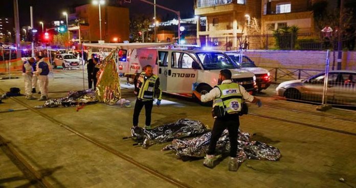 পূর্ব জেরুজালেমে ইহুদীদের এক সিনাগগে বন্দুক হামলার ঘটনায় জড়িত সন্দেহে ৪২ জন গ্রেপ্তার করেছে ইসরায়েল পুলিশ। শুক্রবারের ওই হামলায় সাতজন নিহত এবং আরো দশজন আহত হয়েছেন। গত কয়েক বছরের মধ্যে দেশটিতে এটি সবচেয়ে প্রাণঘাতী হামলার ঘটনা। পুলিশ জানিয়েছে, শুক্রবার স্থানীয় সময় রাত প্রায় সোয়া ৮টার দিকে এক বন্দুকধারী সিনাগগটিতে উপস্থিত হয়ে গুলিবর্ষণ শুরু করে, তার গুলিতে বহু সংখ্যক লোক হতাহত হওয়ার পর পুলিশ তাকে হত্যা করে। খবর বিডিনিউজের।