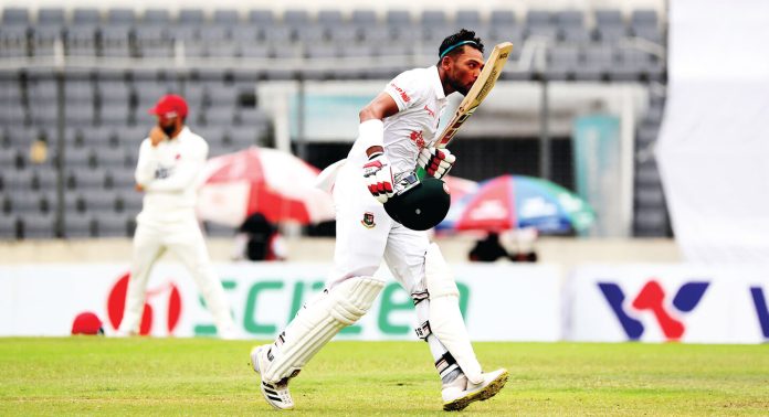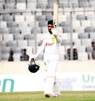 বাংলাদেশের দ্বিতীয় ইনিংসে সেঞ্চুরি করেন নাজমুল হোসেন শান্ত আর মোমিনুল হক। শান্ত ১২৪ করে ফিরলেও মোমিনুল শেষ পর্যন্ত ১২১ রানে অপরাজিত থাকেন। ১২ চার আর ১ ছক্কায় সাজানো তার ইনিংসটি। ৮১ বলে ৮ বাউন্ডারিতে ৬৬ রানে অপরাজিত থাকেন লিটন। ২৬ মাস আর ২৬ ইনিংস পর টেস্টে সেঞ্চুরি পেলেন মোমিনুল। এটি তার ক্যারিয়ারের ১২ তম টেস্ট সেঞ্চুরি। ১২৩ বল খেলে সেঞ্চুরি তুলে নেন মোমিনুল। দিনের শুরুতে শান্ত এবং জাকির মিলে ১৭৩ রানের জুটি গড়েছিলেন। ৭১ রান করে রান আউটে কাটা পড়েন জাকির। এরপর শান্ত এবং মোমিনুল মিলে যোগ করেন ৮৩ রান। সেঞ্চুরির পর নিজের ইনিংসকে খুব বেশি বড় করতে পারেননি শান্ত। ১৫১ বলে ১২৪ রান করেন শান্ত ১৫টি চারের সাহায্যে। অভিজ্ঞ মুশফিকুর রহিম ফিরেছেন মাত্র ৮ রান করে। ফলে ২৮২ রানের মাথায় পড়ে বাংলাদেশের চতুর্থ উইকেট। এরপর মোমিনুল এবং লিটন মিলে যোগ করেন ১৪৩ রান। যা বাংলাদেশ দলের ইনিংসকে নিয়ে যায় ৪২৫ রানে। ১২১ রানে অপরাজিত থাকেন মোমিনুল। আর অধিনায়ক লিটন খেলেন ৮১ বলে ৬৬ রানের ইনিংস। টেস্টের তিন দিন বাংলাদেশের একক আধিপত্য। এখন বাকি দুই দিনে কতটা আধিপত্য ধরে রাখতে পারে সেটাই দেখার। কোনো অলৌকিক কিছু না ঘটলে আজই শেষ হয়ে যাবে টেস্ট সেটা নিশ্চিত করেই বলা যায়। তবে ব্যবধানটা কত হবে সেটাই দেখার।