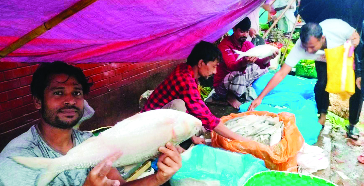 ঝাঁকে ঝাঁকে ইলিশ এখন বাজারে, কিন্তু দাম আকাশচুম্বি। দরিদ্র মানুষের কেনার নেই সাধ্য। এক একটি বড় সাইজের ইলিশ বিক্রি হচ্ছে ৫ থেকে ৬ হাজার টাকাও। ছোট সাইজেরগুলো ৭ শত টাকা থেকে শুরু। এরপরও থেমে নেই বিক্রি। কেউ কেউ একসাথে অনেক মাছ কিনে নিয়ে চলে যাচ্ছে। আবার কেউ কেউ তাকিয়ে তাকিয়ে দেখে থাকে।