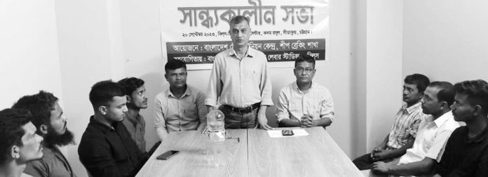 সীতাকুণ্ডের কদম রসুলে অবস্থিত বিলস–ডিটিডিএ ওশ সেন্টারে বাংলাদেশ ট্রেড ইউনিয়ন কেন্দ্র শিপ ব্রেকিং শাখার উদ্যোগে এক সান্ধ্যকালীন সভা গতকাল অনুষ্ঠিত হয়। জাহাজ ভাঙা শ্রমিক নেতা মানিক মণ্ডলের সভাপতিত্বে অনুষ্ঠিত সভায় প্রধান অতিথি ছিলেন সংগঠনের চট্টগ্রাম জেলা কমিটির যুগ্ম সম্পাদক ইফতেখার কামাল খান। এতে আরও উপস্থিত ছিলেন কেন্দ্রীয় কমিটির সংগঠক ফজলুল কবির মিন্টু।