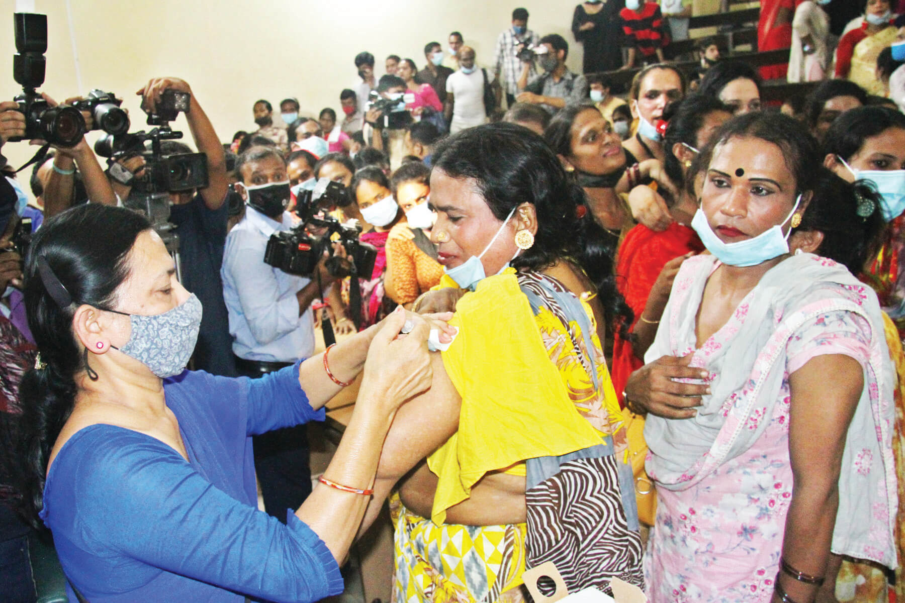 বিশেষ কর্মসূচির আওতায় তৃতীয় লিঙ্গের ৩০০ জন টিকা পেলেন চট্টগ্রামে। গতকাল সোমবার দুপুরে চট্টগ্রাম সিভিল সার্জন কার্যালয়ে বিশেষ বুথ স্থাপনের মাধ্যমে তাদের টিকা দেয়া হয়। বিশেষ করে জাতীয় পরিচয়পত্র (এনআইডি) বা জন্ম নিবন্ধন সনদ না থাকাসহ বিভিন্ন সীমাবদ্ধতার কারণে টিকার জন্য অনলাইনে যাদের রেজিস্ট্রেশনের সুযোগ নেই এবং যারা রেজিস্ট্রেশন করতে পারেন নি এ ধরনের জনগোষ্ঠীকে টিকার আওতায় আনতে বিশেষ এই কর্মসূচি স্বাস্থ্য বিভাগের। তৃতীয় লিঙ্গের এ জনগোষ্ঠীর বেশির ভাগেরই জাতীয় পরিচয়পত্র নেই। নেই জন্ম নিবন্ধন সনদও। যার কারণে করোনার টিকার জন্য অনলাইনে রেজিস্ট্রেশনেরও সুযোগ ছিলনা অনেকটা অবহেলিত এ জনগোষ্ঠীর। এখন রেজিস্ট্রেশন ছাড়াই টিকা নিতে পেরে বেশ উচ্ছ্বাস দেখা গেছে তাদের চোখে-মুখে। বিশেষ কর্মসূচির আওতায় কেবল তালিকার ভিত্তিতেই তাদের টিকা প্রয়োগ করা হয়েছে। তৃতীয় লিঙ্গের জনগোষ্ঠীর একটি সংগঠন এ তালিকা তৈরি করেছে। যা পরবর্তীতে সিভিল সার্জন কার্যালয়ে জমা দেয়া হয়। যদিও এ জনগোষ্ঠীর ৫০০ জনকে টিকা প্রয়োগের টার্গেট ছিল। কিন্তু টিকা নিতে সিভিল সার্জন কার্যালয়ে হাজির হয়েছিলেন ৩০০ জন। দুপুর দেড়টার দিকে চট্টগ্রাম বিভাগীয় পরিচালক (স্বাস্থ্য) ডা. হাসান শাহরিয়ার কবির তৃতীয় লিঙ্গের জনগোষ্ঠীর এ টিকাদান কার্যক্রমের উদ্বোধন করেন।
