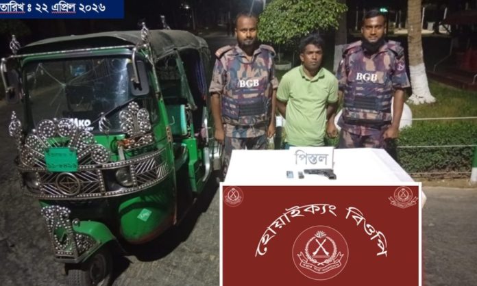 কক্সবাজারের টেকনাফের হোয়াইক্যং চেকপোস্টে অভিযান চালিয়ে একটি পিস্তলসহ এক ব্যক্তিকে আটক করেছে বর্ডার গার্ড বাংলাদেশ (বিজিবি)।