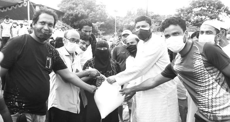 টেকনাফে করোনায় কর্মহীন হয়ে পড়া হতদরিদ্র ও অসচ্ছল ৫ শতাধিক পরিবারের মাঝে খাদ্যসামগ্রী বিতরণ করা হয়েছে। গতকাল সামাজিক দূরত্ব বজায় রেখে টেকনাফ পৌরসভার আদর্শ কমপ্লেঙ মাঠে আয়োজিত অনুষ্ঠানে চট্টগ্রামের সাবেক ক্রিকেটার ও সেক্টর কমান্ডারস ফোরাম-মুক্তিযুদ্ধ ’৭১-এর টেকনাফ উপজেলা শাখার সভাপতি সাইফুদ্দিন খালেদের ব্যক্তিগত তহবিল থেকে এসব খাদ্যসামগ্রী বিতরণ করা হয়। এ সময় উপস্থিত ছিলেন টেকনাফ উপজেলা আওয়ামী লীগের ভারপ্রাপ্ত সভাপতি মাস্টার জাহেদ হোসেন, সেক্টর কমান্ডারস ফোরাম-মুক্তিযুদ্ধ ’৭১ টেকনাফ উপজেলা শাখার সাধারণ সম্পাদক মোজাম্মেল হক, আওয়ামী মটর শ্রমিক লীগের কেন্দ্রীয় কার্যনির্বাহী সদস্য জিয়াউর রহমান জিয়া, সেক্টর কমান্ডারস ফোরাম-মুক্তিযুদ্ধ ’৭১ এর তোফায়েল আহমেদ, মোহাম্মদ আজাদ, মো. সাইফুল প্রমুখ। প্রেস বিজ্ঞপ্তি।