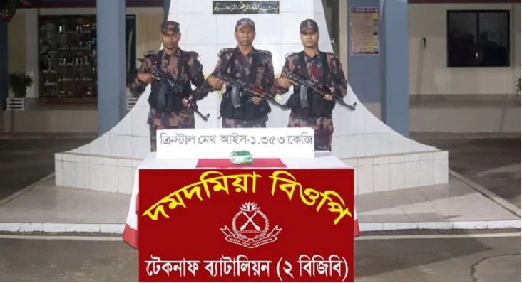 প্রেসবিজ্ঞপ্তিতে তিনি জানান, মিয়ানমার হতে মাদকের চালান পাচারের গোপন সংবাদের ভিত্তিতে নাফনদীর জালিয়ার দ্বীপে অবস্থান নেয় বিজিবি সদস্যরা। এ সময় দুই ব্যক্তি একটি কাঠের নৌকা নিয়ে মিয়ানমার হতে বাংলাদেশ অভিমুখে আসতে দেখে থামার সংকেত দেয় বিজিবি সদস্যরা। বিজিবির উপস্থিতি টের পেয়ে দুই নৌকারোহী নদীতে লাফ দিয়ে সাঁতরিয়ে পালিয়ে যায়। পরে নৌকাটি তল্লাশি চালিয়ে জালের সাথে মোড়ানো ১ কেজি ৩৫৩ গ্রাম ক্রিস্টাল মেথড (আইস) ও ১০ কেজি ওজনের সুতার জালসহ নৌকাটি জব্দ করা হয়।