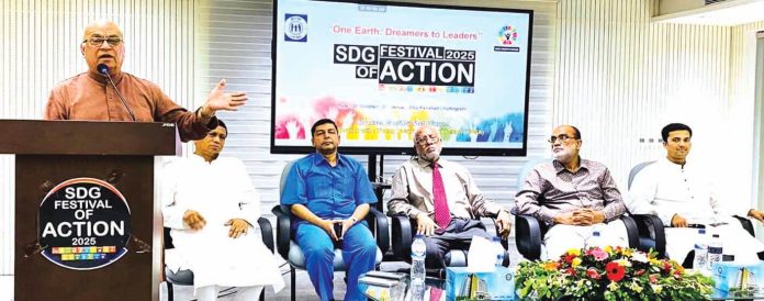 এসডিজি ফেস্টিভ্যাল অফ একশনের সমাপনী অনুষ্ঠান গতকাল শনিবার চট্টগ্রাম জেলা পরিষদ মিলনায়তনে সম্পন্ন হয়। এসডিজি ইয়ুথ ফোরামের উদ্যোগে ও ইপসাসহ প্রায় ৫০টি সামাজিক ও যুব সংগঠনের সহযোগিতায় অনুষ্ঠানে প্রধান অতিথি ছিলেন মুক্তিযুদ্ধ, ত্রাণ ও দুর্যোগ মন্ত্রণালয়ের উপদেষ্টা ফারুক ই আজম বীরপ্রতীক। তিনি বলেন, টেকসই উন্নয়ন অভীষ্ট অর্জনে তরুণরাই পরিবর্তনের অগ্রদূত। তরুণদের সম্মিলিত উদ্যম, প্রচেষ্টা, সৃজনশীলতা ও উদ্ভাবনী ভাবনাকে কাজে লাগিয়ে টেকসই সমাজ, শহর ও রাষ্ট্র কাঠামোর অগ্রযাত্রাকে বেগবান করতে হবে।