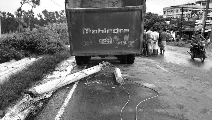প্রত্যক্ষদর্শীরা জানান, ঘটনাস্থলে চট্টগ্রামমুখী একটি বেপরোয়া গতির ট্রাক বৈদ্যুতিক খুঁটিতে ধাক্কা দিয়ে সামনের দিকে চলতে থাকে। এতে মহাসড়কের উভয় পাশের ৩টি খুঁটি ও বিদ্যুৎ সঞ্চালন লাইনের তার ক্ষতিগ্রস্ত হয়। খুঁটিসহ ট্রাকটি সামনের দিকে যেতে থাকলে আশপাশের লোকজন চিৎকার করেন। তারপর চালক ট্রাকটি থামান। এ সময় বিষয়টি খেয়াল করেননি বলে চালক স্থানীয়দের জানান। দুর্ঘটনায় কেউ হতাহত হয়নি। তবে মহাসড়কের উপর বৈদ্যুতিক খুঁটি পড়ে থাকায় প্রায় এক ঘণ্টা যানবাহন চলাচলে ব্যাঘাত সৃষ্টি হয়েছে। ঘটনার সময় বিদ্যুৎ সংযোগ বন্ধ থাকায় বড় ধরনের দুর্ঘটনা থেকে রক্ষা পাওয়া গেছে। ধারণা করা হচ্ছে, ট্রাকচালক তন্দ্রাচ্ছন্ন হয়ে গাড়ি চালানোর কারণে এমন দুর্ঘটনা ঘটেছে।