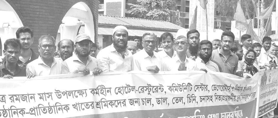 নেতৃবৃন্দ বলেন, পবিত্র রমজানে অন্যান্য সেক্টরের শ্রমিক কর্মচারীরা ছুটি পেয়ে বেতন বোনাস নিয়ে পরিবার পরিজনের সাথে ঈদ করে। অথচ হোটেল, ডেকোরেটার্স, কমিউনিটি সেন্টার, নির্মাণ শ্রমিকরা বিনা মজুরী ও বোনাসে হতাশায় নিরানন্দের মধ্যে অতিবাহিত করে। এসব সেক্টরে প্রচুর মহিলা শ্রমিকও কাজ করে। তাদের একটা অংশ এমন দুরবস্থায় থাকে যে তাদের সেহরী খাওয়া বা ইফতার গ্রহণ করার সামর্থও থাকে না। রমজানে তাদের চাল, ডাল, ছোলা, তেল, চিনি, আটাসহ রিলিফ প্রদানের দাবি জানান নেতৃবৃন্দ।