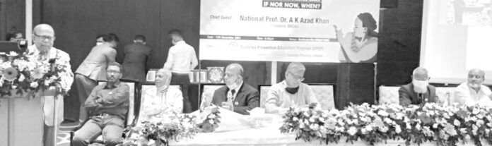 ডায়াবেটিস প্রিভেনশন এডুকেশন প্রোগ্রামের উদ্যোগে (ডিপেপ) প্রথম প্রতিষ্ঠা বার্ষিকী ডায়বেটিক দিবস উপলক্ষে আলোচনা সভা গত ১২ নভেম্বর রেডিসন ব্লু চট্টগ্রাম বে ভিউর মোহনা হলে উদযাপিত হয়েছে। অপসোনিন ফার্মা লিমিটেডের সহযোগিতায় চট্টগ্রাম বিভাগের স্বাস্থ্য পরিচালক ডা. হাসান শাহরিয়ার কবিরের সভাপতিত্বে অনুষ্ঠিত সভায় প্রধান অতিথি ছিলেন জাতীয় অধ্যাপক ডা এ কে আজাদ খাঁন। বিশেষ অতিথি ছিলেন জেলা সমাজকল্যাণ অধিদপ্তরের সহকারী পরিচালক মো. শহীদুল ইসলাম, মাস্টার আবুল কাসেম, মা ও শিশু হাসপাতালের ট্রাস্টি বোর্ডের সভাপতি ডা. এম, এ, তাহের খান ও (ডিপেপ) এর মেম্বার সেক্রেটারি ডা. লিয়াকত আলী চৌধুরী প্রমুখ। মূল বক্তব্য উপস্থাপন করেন চমেকের ডায়াবেটিস বিশেষজ্ঞ ডা. শাহরিয়ার আহমেদ মিলন। অনুষ্ঠান সঞ্চালনা করেন অধ্যাপক ডা. তামান্না মাহমুদ উর্মী। অপসোনিন ফার্মার পক্ষে বক্তব্য রাখেন এ্যাসিসট্ন্েট সেলস ম্যানেজার মোহাম্মদ জাহাঙ্গীর আলম। এতে চিকিৎসা সেবায় বিশেষ অবদান রাখায় আজীবন সম্মাননা স্মারক প্রদান করা হয় ডায়াবেটিস রোগ বিশেষজ্ঞ অধ্যাপক ডা আব্দুস সালেক মোল্লা ও অধ্যাপক ডা. তৌহিদুল আলমকে। প্রধান অতিথি বলেন, ডায়বেটিস রোগের অন্যতম বিষয় হলো কিভাবে ইনসুলিনের প্রয়োগ করতে হবে, ফুট কেয়ার, কিভাবে ডায়েট ম্যানেজ করতে হয়, নিউট্রিয়েশন, স্বল্প মূল্যের কি কি ওষুধ ব্যবহার করা যায়, সরকারী বা বেসরকারি পর্যায়ে কিভাবে অল্প খরচে ডায়াবেটিস চিকিৎসা করা যায়, ফিজিক্যাল এঙারসাইজ, ফুড হ্যাবিটস ইত্যাদি বিষয়ে এডুকেশনের মাধ্যমে জনসচেতনতা বাড়ানোর কোনো বিকল্প নেই। তিনি সচেতনতার মাধ্যমে ডায়বেটিস রোগ প্রতিরোধ করা সম্ভব বলে উল্লেখ করেন। প্রেস বিজ্ঞপ্তি।