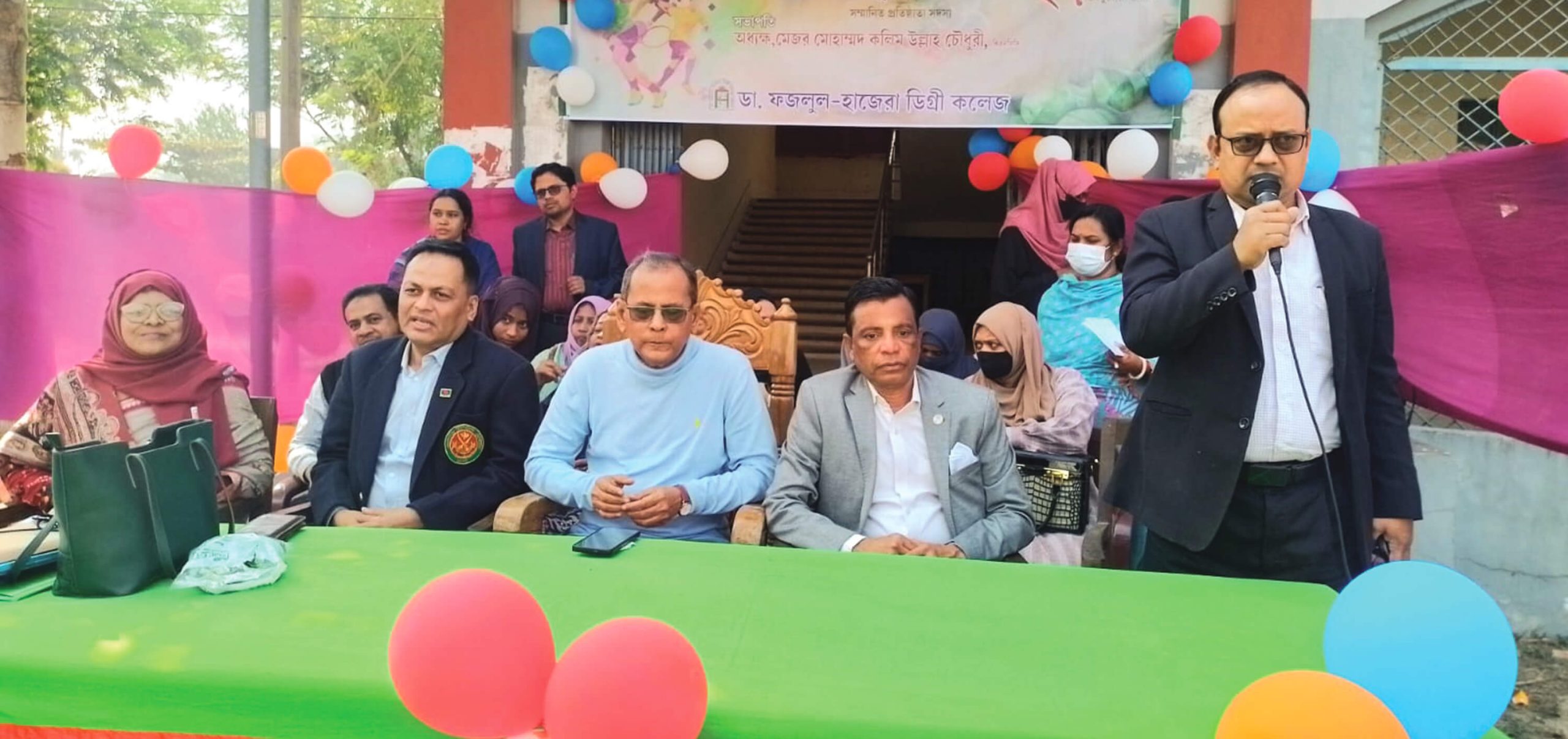 ডা. ফজলুল হাজেরা ডিগ্রি কলেজের বার্ষিক ক্রীড়া প্রতিযোগিতা গত মঙ্গলবার কলেজ মাঠে উদ্বোধন করা হয়। প্রতিষ্ঠাতা সদস্য মো. মোরশেদুল আমীন প্রধান অতিথি হিসেবে পায়রা ওড়ানোর মাধ্যমে উদ্বোধন ঘোষণা করেন। সভাপতিত্ব করেন অধ্যক্ষ মেজর মোহাম্মদ কলিম চৌধুরী। বিশেষ অতিথি ছিলেন বিদ্যোৎসাহী সদস্য অ্যাডভোকেট মাহফুজুর রহমান মিল্লাত, অভিভাবক সদস্য মো. শফিকুল আলম চিশতী, আহ্বায়ক সহকারী অধ্যাপক তাহমিনা বেগম। অনুষ্ঠান সঞ্চালনা ছিলেন প্রভাষক মো. আসলাম রেজা। প্রেস বিজ্ঞপ্তি।