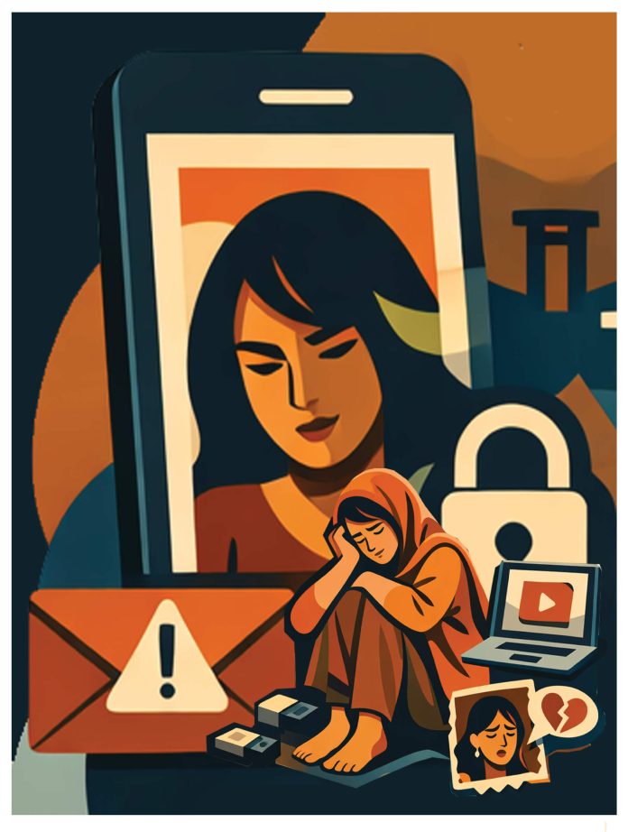 ‘বিজ্ঞান মানুষকে দিয়েছে বেগ, কেড়ে নিয়েছে আবেগ’ যাযাবর–এর এই পঙ্ক্তিটি এখন শতভাগ সত্য প্রমাণিত হচ্ছে। তথ্য প্রযুক্তির অবাধ ব্যবহার এর কল্যাণে মানুষের হাতের মুঠোয় গোটা বিশ্ব। একটি বাটন টিপেই বিশ্বের যাবতীয় ঘটনা মানুষ জেনে যাচ্ছে। এক পলকে দেশের টেকনাফ থেকে তেতুলিয়া, বিশ্বের উত্তর মেরু থেকে দক্ষিণ মেরু প্রযুক্তির কারণে মানুষের নখদর্পণে। কিন্তু এই প্রযুক্তি উন্নত বিশ্বের বিভিন্ন দেশের জন্য যতখানি ইতিবাচক, আমাদের দেশের জন্য ঠিকই ততখানি নেতিবাচক। নেতিবাচক বলার যথেষ্ট কারণও রয়েছে। সেই বিষয়গুলো পরে আলাদা করে লিখবো। এখন শুধুমাত্র নারীরা এই সাইবার জগতে কতখানি অনিরাপদ সেটিই তুলে ধরবো। আমরা জানি, প্রযুক্তি আজ আমাদের প্রত্যেকের জীবনের এক অবিচ্ছেদ্য অংশ। অথচ এই উন্নত প্রযুক্তিই আজ নারীর জন্য আতঙ্কের কারণ হয়ে দাঁড়িয়েছে যা এখন ডিজিটাল সহিংসতা নামে পরিচিত। এই সহিংসতার ধরনও বহুমুখী। কারো সম্মতি ছাড়া অন্তরঙ্গ ছবি বা ভিডিও ছেড়ে দেয়া থেকে শুরু করে সাইবার বুলিং, অনলাইন ট্রলিং কিংবা কুরুচিপূর্ণ মন্তব্য করা এখন নিত্য নৈমিত্তিক ঘটনা। এর সাথে যুক্ত হয়েছে কৃত্রিম বুদ্ধিমত্তা বা এআই–এর অপব্যবহার। যার মাধ্যমে ফেক পর্ণোগ্রাফি বা বিকৃত ছবি তৈরি করে নারীর সম্মানহানি করা হচ্ছে। এছাড়াও অনলাইনে ব্যক্তিগত তথ্য মিথ্যার আশ্রয় নিয়ে বানোয়াট গল্প বানিয়ে তা ফাঁস করে প্রচার করছে। সবসময় নজরদারিতে রাখা, যৌন হয়রানি এবং নারী বিদ্বেষী বিভিন্ন অনলাইন পেইজ–এর মাধ্যমে ঘৃণাত্মক বক্তব্য ছড়ানোর ঘটনাগুলো ডিজিটাল সহিংসতার অন্তর্ভুক্ত। এই অপরাধটি নিয়ে কিন্তু কঠোর আইন রয়েছে। এই পরিসংখ্যানে জানা গেছে, অনলাইন সহিংসতার শিকারদের মাঝে প্রায় ৭৫% থেকে ৮২% নারী। এই ধরনের অপরাধের মধ্যে রয়েছে সোশ্যাল মিডিয়ায় হয়রানি, ছবি ম্যানিপুলেশন, পর্ণোগ্রাফি, ভুয়া প্রোফাইল তৈরি এবং ব্ল্যাকমেইলিং এর মাধ্যমে চাঁদা দাবি।
