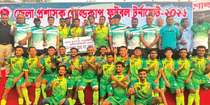 রাঙ্গামাটি জেলা প্রশাসন আয়োজিত ডিসি গোল্ডকাপ ফুটবল টুর্নামেন্ট গতকাল রাঙ্গামাটি জেলার মারি স্টেডিয়ামে শুরু হয়েছে। উদ্বোধনী খেলায় কাপ্তাই উপজেলা টাইব্রেকারে ৩–০ গোলে নানিয়ারচর উপজেলাকে পরাজিত করে। কাপ্তাই উপজেলার পক্ষে টাইব্রেকারে গোল করেন যথাক্রমে শুভ ঘোষ, স্বপন দাস এবং মো. নাঈম। রাঙ্গামাটি জেলা প্রশাসক নাজমা আশরাফী টুর্নামেন্টের উদ্বোধন করেন। উদ্বোধনী অনুষ্ঠানে উপস্থিত ছিলেন রাঙ্গামাটি জোন কমান্ডার লেঃ কর্নেল মো. একরামুল রাহাত, রাঙ্গামাটি জেলা পুলিশ সুপার মো. আব্দুর রকিব, অতিরিক্ত জেলা প্রশাসক মো. রুহুল আমীন, রাঙ্গামাটি জেলা বিএনপির সাধারণ সম্পাদক এডভোকেট মামুনুর রশিদ মামুন, কাপ্তাই উপজেলা নির্বাহী অফিসার মো. রুহুল আমিন, কাপ্তাই উপজেলা পরিষদের সাবেক চেয়ারম্যান মো. দিলদার হোসেন এবং কাপ্তাই উচ্চ বিদ্যালয়ের প্রধান শিক্ষক মাহবুব হাসান। আগামী ১ এপ্রিল মারি স্টেডিয়ামে কাপ্তাই উপজেলা বাঘাইছড়ি উপজেলার বিরুদ্ধে দ্বিতীয় খেলায় অংশ নেবে। উল্লেখ্য ডিসি গোল্ডকাপ ফুটবল টুর্নামেন্টে রাঙ্গামাটি জেলার ১০টি উপজেলা অংশ নেয়।