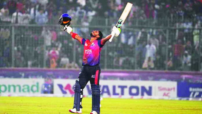 মিরপুরে গতকাল শুক্রবার রাজশাহীর জয়ের ভিত্তি গড়ে দেন তানজিদ। আগের ১২ ম্যাচে মাত্র একটি ফিফটি করেছেন বাঁহাতি এই ব্যাটার। ফাইনালে তিনিই উপহার দেন ৭ ছক্কায় ৬২ বলে ১০০ রানের দারুণ ইনিংস। এটি তার বিপিএলে তৃতীয় সেঞ্চুরি। বাংলাদেশের প্রথম ব্যাটার হিসেবে বিপিএলে তিন শতকের স্বাদ পেয়েছেন তানজিদ। বিপিএল ফাইনালে তিন অঙ্কের রানের প্রথম ব্যাটারও তিনিই।