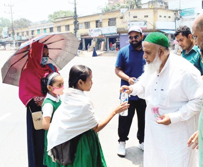 তীব্র তাপপ্রবাহে অতিষ্ঠ জনজীবন। এর মাঝেও জীবন জীবিকা এবং দায়িত্ব পালনে মাঠে নেমেছেন আইনশৃঙ্খলা বাহিনী, শ্রমিক, দিনমজুর, রিকশা ও ভ্যানচালক। আর তাদের জন্য সুপেয় পানি নিয়ে হাজির হন চট্টগ্রাম মহানগর আওয়ামী লীগের সহসভাপতি ও চট্টগ্রাম সিটি কর্পোরেশনের সাবেক প্রশাসক খোরশেদ আলম সুজন। গতকাল মঙ্গলবার সকালে নগরীর বিভিন্ন রাস্তায় কর্মরতদের মাঝে সুপেয় পানি বিতরণ করতে দেখা যায় তাকে। এ সময় তিনি অবিলম্বে স্কুল, কলেজ, মাদ্রাসায় ছুটি ঘোষণা করার জন্য শিক্ষামন্ত্রীর নিকট দাবি জানান। এ সময় তিনি স্কুলগামী শিক্ষার্থী, আইনশৃঙ্খলা ও যানজট নিরসন কাজে নিয়োজিত পুলিশ বাহিনী, দিনমজুর, রিকশা ও ভ্যানচলক, সিটি কর্পোরেশনের কর্মচারীসহ পথচারীদের মাঝে সুপেয় পানি দিয়ে তৃষ্ণা নিবারণ করেন। তীব্র গরমে রাস্তাঘাট কিংবা ফুটপাতে শরবত পান করে এবং বিভিন্ন খোলা, পচা–বাসি খাবার খেয়ে নগরবাসী যাতে অসুস্থ না হয় সে ব্যাপারে সকলকে সচেতন করেন তিনি। তিনি বলেন, গ্রীষ্মের প্রখর দাবানলে ওষ্ঠাগত জনজীবন। প্রাণিকূলেরও হাঁসফাঁস অবস্থা। তাপদাহে শ্রমিক, দিনমজুর, রিকশা–ভ্যানচালকরা অস্থির হয়ে পড়েছেন। বিপাকে পড়েছেন খেটে খাওয়া নিম্ন আয়ের মানুষ। সেজন্য কর্মজীবী মানুষদের সকালের পরিবর্তে বিকেল বেলা কাজে লাগানোর অনুরোধ জানান সুজন। তিনি আরো বলেন, আমাদের শিক্ষার্থীরা আগামী দিনের ভবিষ্যৎ কর্ণধার। এ গরমে তাদের প্রতিও খেয়াল রাখা একান্ত জরুরি। মাত্রাতিরিক্ত গরমে নগরীর বিভিন্ন স্কুল, কলেজ, মাদ্রাসা থেকে শিক্ষার্থীদের অসুস্থতার খবর পাওয়া যাচ্ছে। এ নিয়ে উদ্বিগ্ন অভিভাবক সমাজ। হিট স্ট্রোকে অসুস্থসহ অনেক শিক্ষার্থী পেটের পীড়ায় ভুগছে। এমতাবস্থায় স্কুল, কলেজ, মাদ্রাসাসহ সকল শিক্ষাপ্রতিষ্ঠান জরুরি ভিত্তিতে ছুটি ঘোষণা করার দাবি জানান তিনি। তাছাড়া তীব্র গরমে ফুটপাত কিংবা রাস্তায় বিভিন্ন রং মেশানো রকমারি শরবত পান করে পেটের পীড়াসহ বিভিন্ন অসুখে আক্রান্ত হয়ে অনেককেই হাসপাতালে পর্যন্ত ভর্তি হতে হচ্ছে।