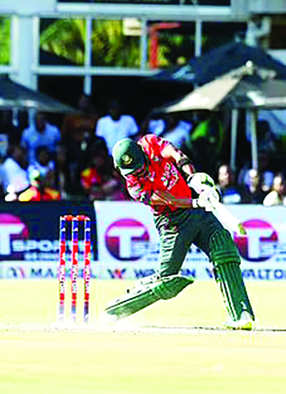 তার ঝড়ো ব্যাটিংয়ে পাওয়ার প্লে ভালোভাবে কাটিয়ে বড় লক্ষ্য তাড়া করার আশা দেখে টাইগাররা। কিন্তু এরপরই অদ্ভুত এক আউট হয়ে সাজঘরে ফেরেন ডানহাতি এই ব্যাটার। ইনিংসের সপ্তম ওভারে শন উইলিয়ামসের বলে শর্ট ফাইন লেগে ক্যাচ তুলে দেন লিটন। এনগারাভা বলটা তালুবন্দী করলেও দ্রুত হাত থেকে ফেলে দেন। ফলে ক্যাচ আউট থেকে বেঁচে যান লিটন। কিন্তু লিটন ভেবেছিলেন তিনি আউট হয়ে গেছেন। তাই ক্রিজ ছেড়ে বেরিয়ে পড়েন। ওই সুযোগে রানআউট করে দেন উইলিয়ামস। ১৯ বলে ৬ বাউন্ডারিতে গড়া লিটনের ৩২ রানের ঝড়ো ইনিংসটি থামে বোকার মতো আউটে। এনামুল হক বিজয় শুরুটা করেছিলেন ধীরে সুস্থে। ২৫ বলে ২০ রান করে উইকেটে সেটও হন। এরপর হাত খোলার চেষ্টা করেন। ইনিংসের দশম ওভারে সিকান্দার রাজাকে মিডউইকেটের ওপর দিয়ে দারুণ এক ছক্কা হাঁকান। পরের বলেও একই জায়গা দিয়ে ছক্কা মারতে গিয়েছিলেন বিজয়। সেটাই বিপদ ডেকে আনে। বল টাইমিং করতে না পেরে এবার ডিপমিড উইকেটে ক্যাচ হয়ে যান। ২৭ বলে ২ ছক্কায় ২৬ রানে সাজঘরে ফেরেন বিজয়। দুই ওভার পর আফিফ হোসেনও আউট হন নিজের ভুলে। লুক জঙউইয়ের পাতা ফাঁদে পা দিয়ে পুল শট খেলে ডিপমিডউইকেটে ক্যাচ দেন ৮ বলে ১০ রান করা আফিফ। অধিনায়ক নুরুল হাসান সোহান উইকেটে আসার পর জয়ের আশা জাগে বাংলাদেশের। ১৫ তম ওভারে ওয়েলিংটন মাসাকাদজাকে টানা দুই ছক্কা হাঁকান টাইগার দলপতি। নাজমুল হোসেন শান্তর সঙ্গে ২০ বলে ৪০ রানের ঝড়ো জুটি গড়েন সোহান। জুটিটি ভাঙে শান্ত পুল করতে গিয়ে বল সোজা আকাশে তুলে দিলে। ২৫ বলে ৩ চার আর ১ ছক্কায় ৩৭ রানের ঝড়ো ইনিংস খেলে জঙউইয়ের শিকার হন শান্ত। এছাড়া মোসাদ্দেক হোসেন করেন ১০ বলে ১৩।